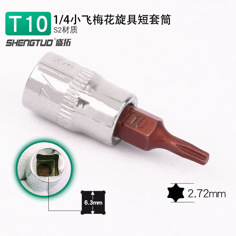 Shengtuo 1/4 소형 비행 압력 배치 소켓 헤드 크로스 패턴 쌀 소켓 나사 전기 렌치 헤드스토어 가기