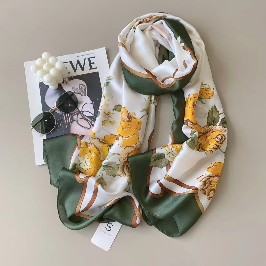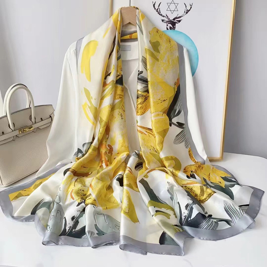 한국어 버전 봄과 여름 새로운 인쇄 실크 100% 뽕나무 실크 질감 실크 스카프 태양 보호 목도리 거즈 스카프 여성용 여행 스카프스토어 가기