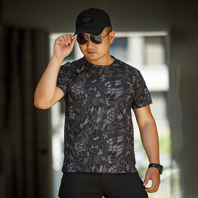 아웃도어 티셔츠 남성용 루즈한 플러스 사이즈 캐주얼 반팔 탄성 속건 위장 트레이닝 티셔츠 아웃도어 반팔 남성용스토어 가기