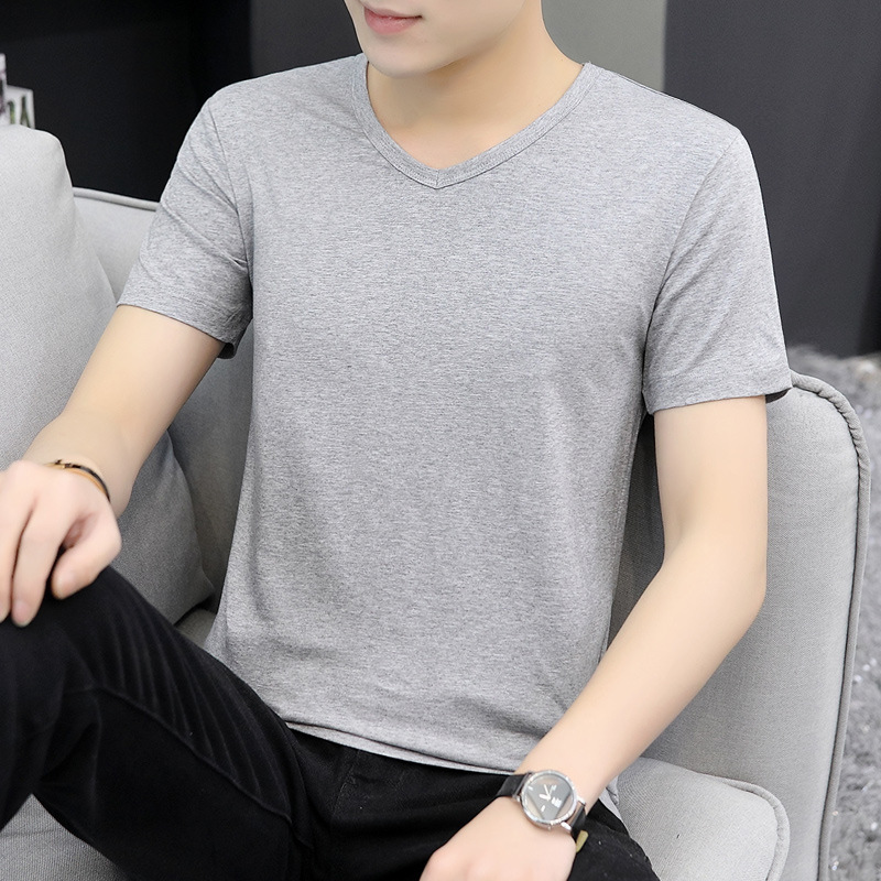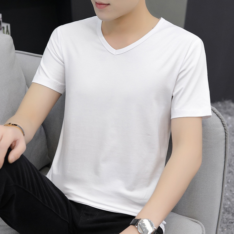 솔리드 컬러 반팔 남성 티셔츠 트렌디 남성용 반팔 트렌디 여름 화이트 베이스 셔츠스토어 가기