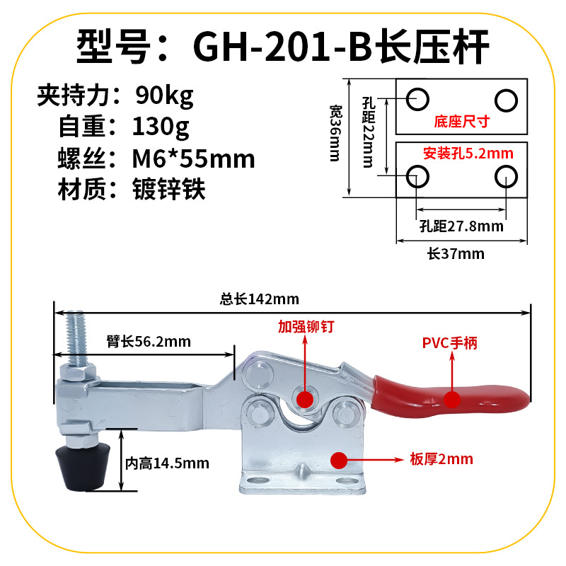 뜨거운 판매 수평 빠른 고정 장치 툴링 클램프 프레서 수동 평면 프레스 빠른 클램프 용접 고정 토글