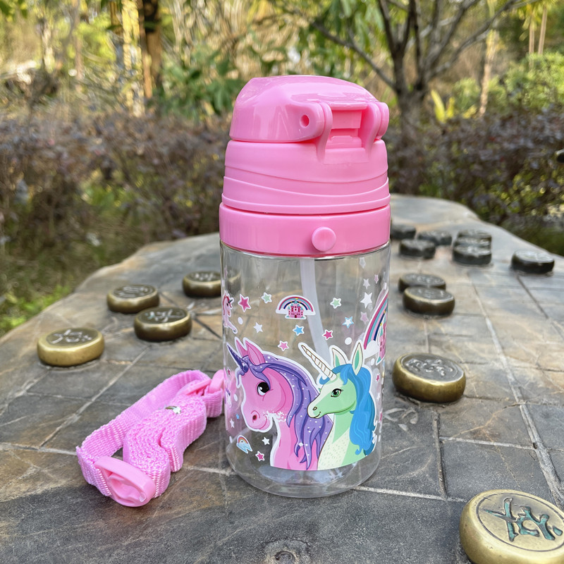 어린이 주전자 학생 다이렉트 드링크 컵 350ml 컵 맛없는 누수 방지 어린이 만화 시퍼 컵 스트랩 컵 여름