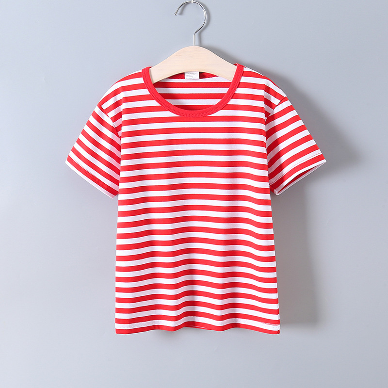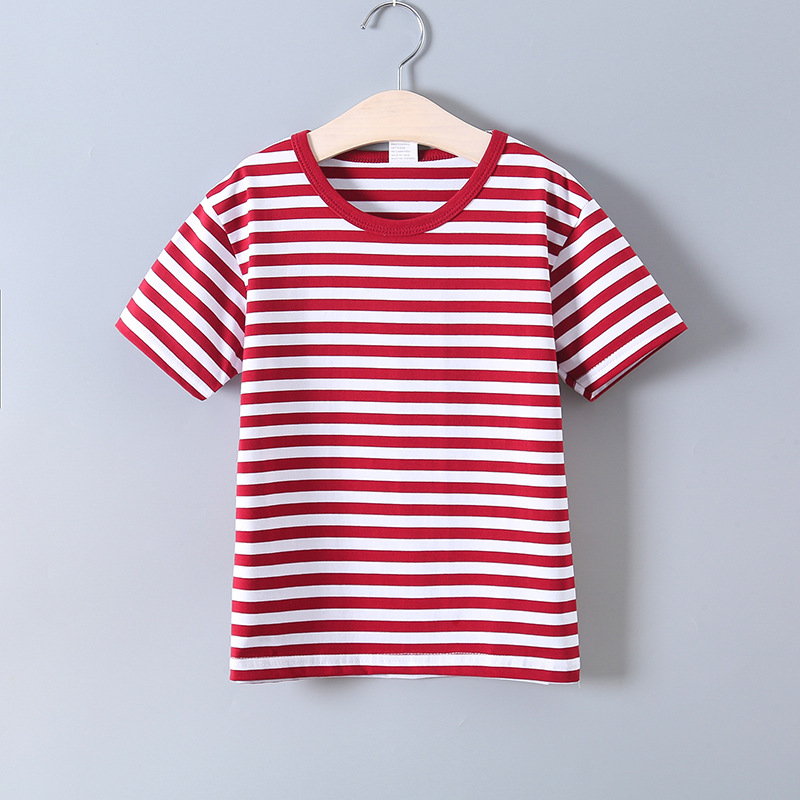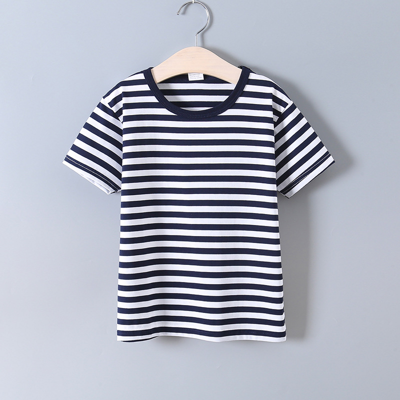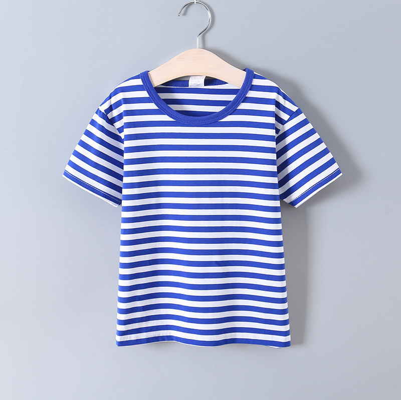 발라부비 아동 스트라이프 티셔츠 순면 어린이 해군풍 셔츠 남아 라운드넥 베이비 티셔츠 중대형 아동용 베이스 레이어 티셔츠