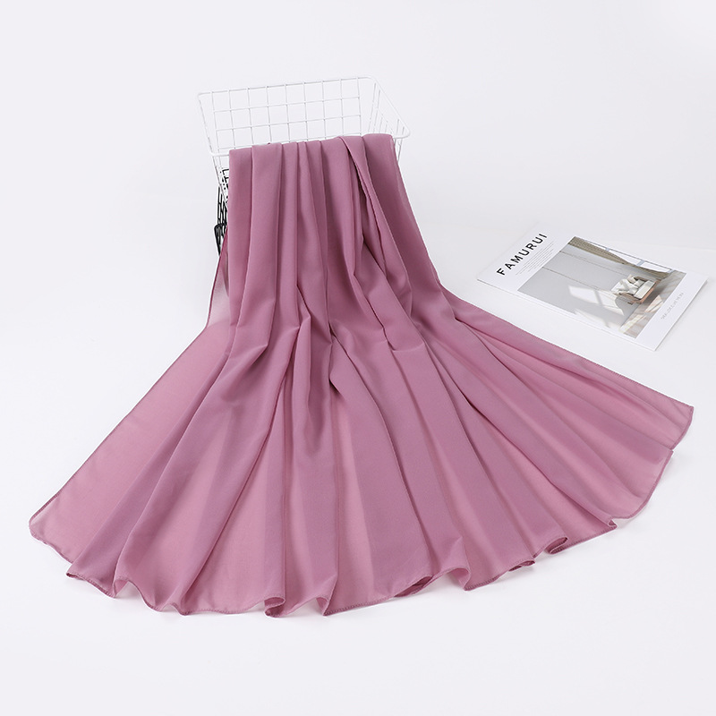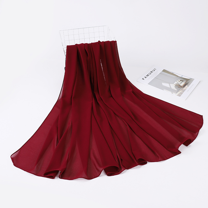 단색 진주 쉬폰 터번 대형 여성 스카프 숨기기