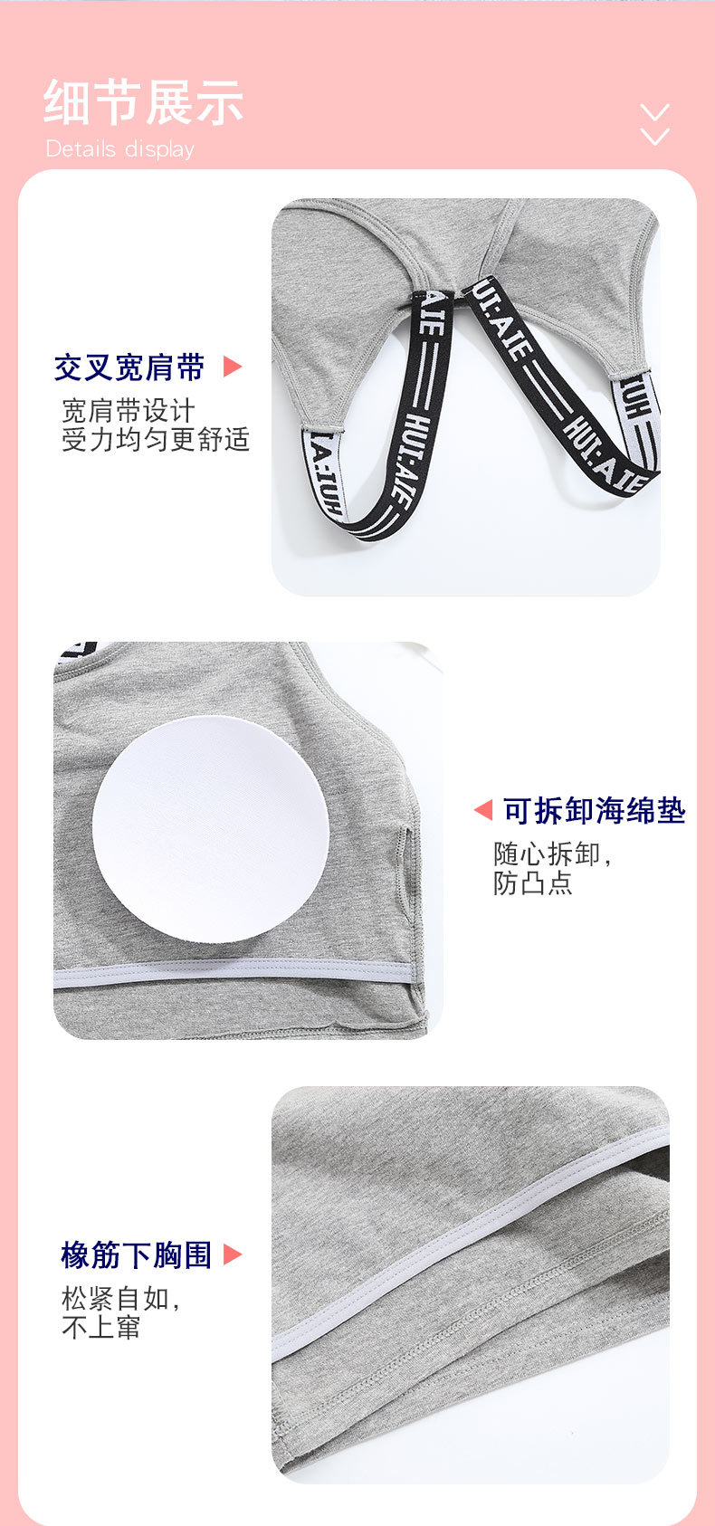 여아 스포츠 브라, 아름다운 등, 10세, 중학생, 발달기, 작은 조끼, 아동 브라 제조 업체 도매스토어 가기