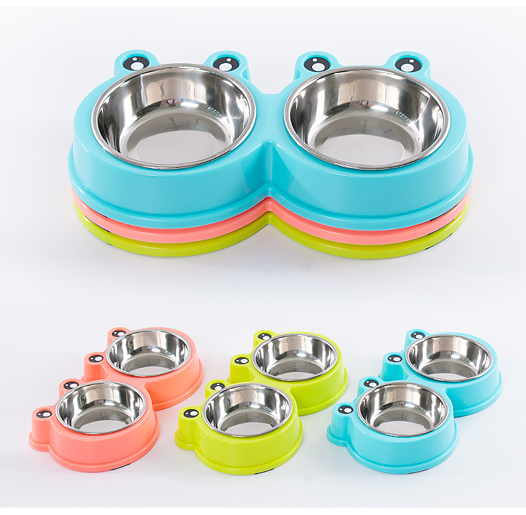 고양이 그릇 개 그릇 더블 볼 애완 동물 피더 미끄럼 방지 애완 동물 그릇 개 그릇 스테인레스 개 그릇 애완 동물 용품 도매