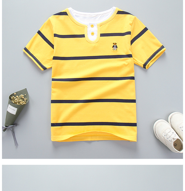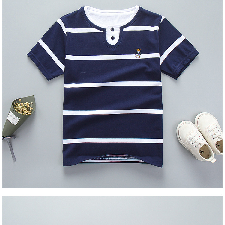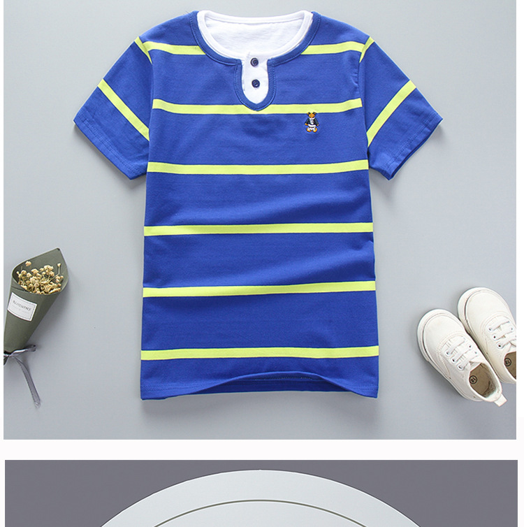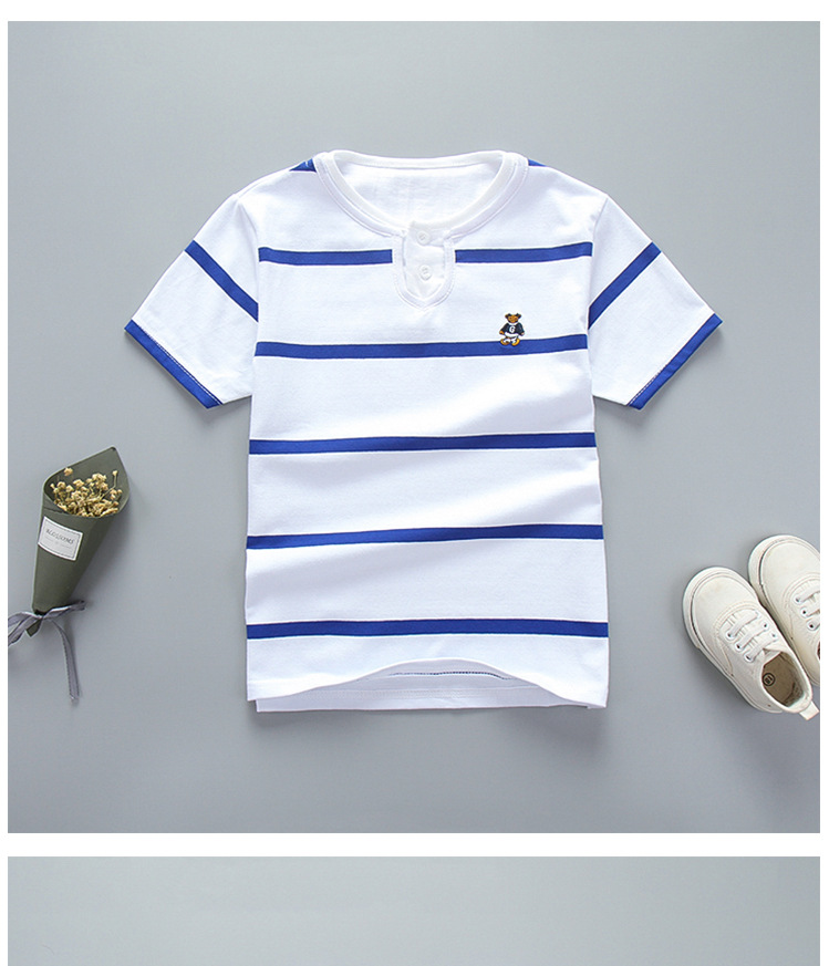 남학생 반소매 코튼 티셔츠 어린이 여름 더블넥 라운드 넥 반소매 아동복 면 통기성 한국식 면화스토어 가기
