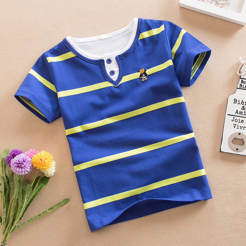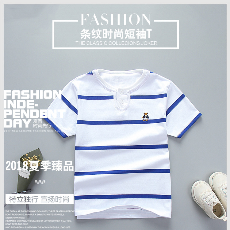 남학생 반소매 코튼 티셔츠 어린이 여름 더블넥 라운드 넥 반소매 아동복 면 통기성 한국식 면화