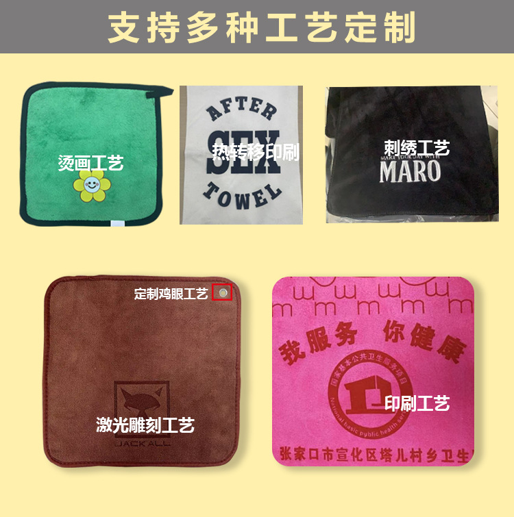 420g 유치원용 작은 수건 25*25 후크 포함 손 닦는 수건 두꺼운 흡수성 청소 수건 로고 추가 가능스토어 가기