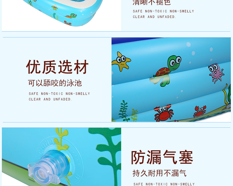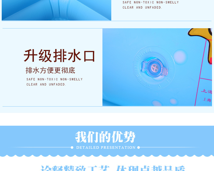 气味问题:我们盈泰产品是采用绿色环保进口优质pvc材料,亲们可以放心使用!由于出厂的时候都是密封收缩包装的;亲收到宝贝打开时会有一点点气味,亲先不要急于充气使用,亲可以先将泳池取出然后放入温水中浸泡15-20分钟(可以倒入部分花露水或者沐浴露);然后充气完成之后可以放到通风处凉至(放到太阳底下晒一下)可以有效的驱除气味,因气味问题我们不接受退换货哦,特别特别介意的亲,请慎拍!!!