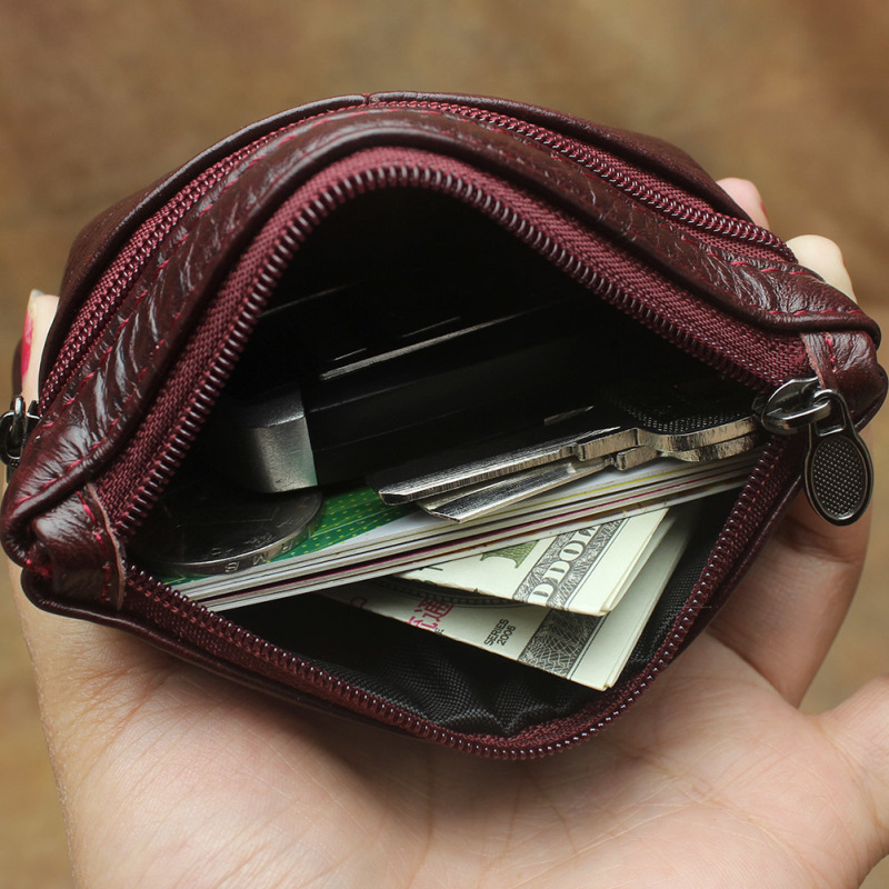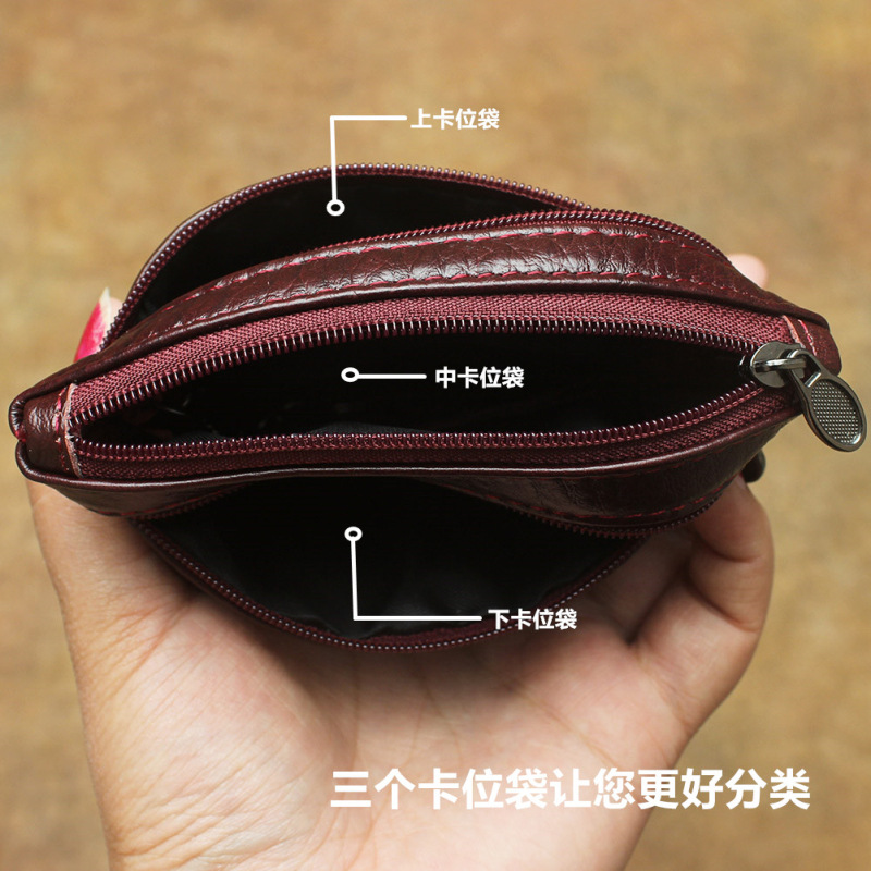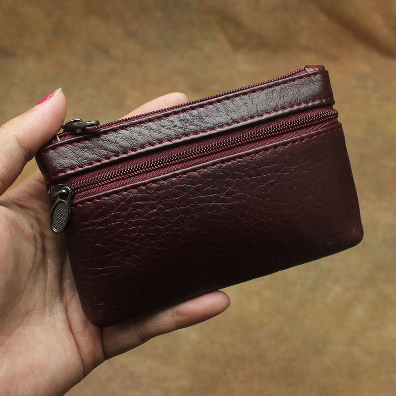 대외 무역 정품 가죽 동전 지갑 버스 은행 카드 가방 더블 레이어 지퍼 소가죽 손 동전 돈 보관 가방 대형스토어 가기