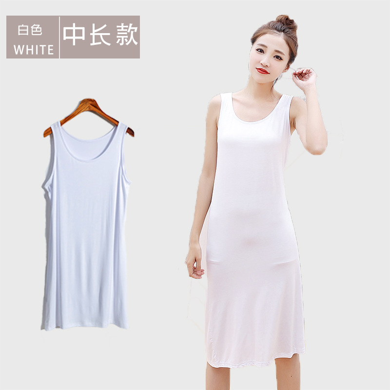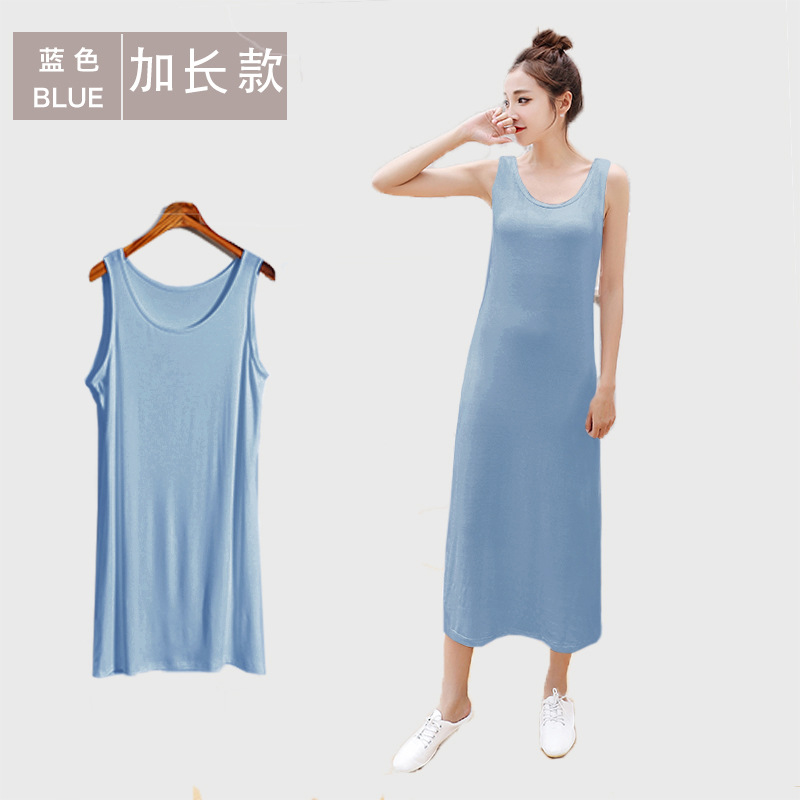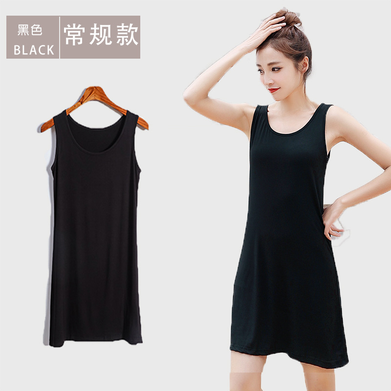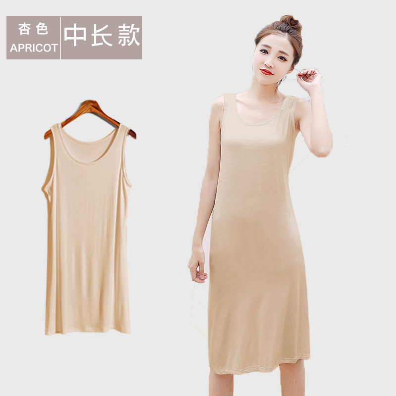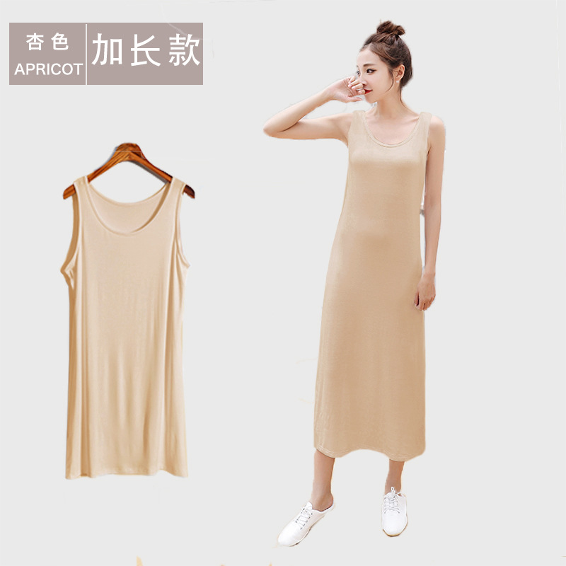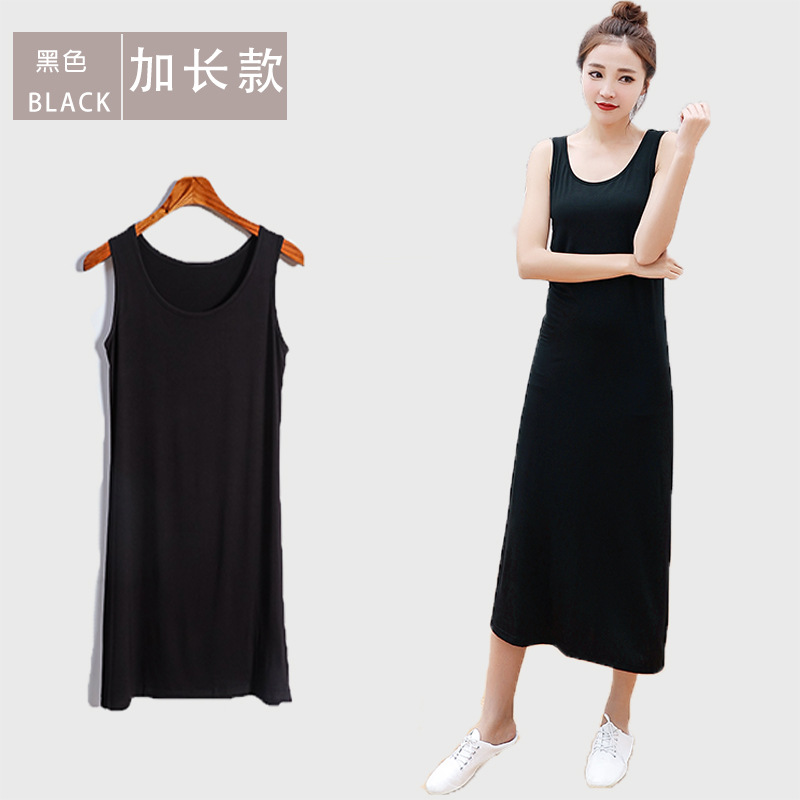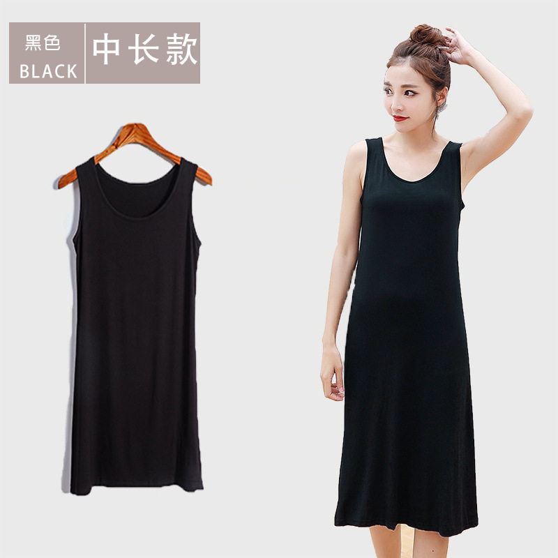 40 짠 여름 모달 원피스 중간 길이 여성용 베이스 내부 페티코트 민소매 탑 느슨한 겉옷 탱크 원피스스토어 가기