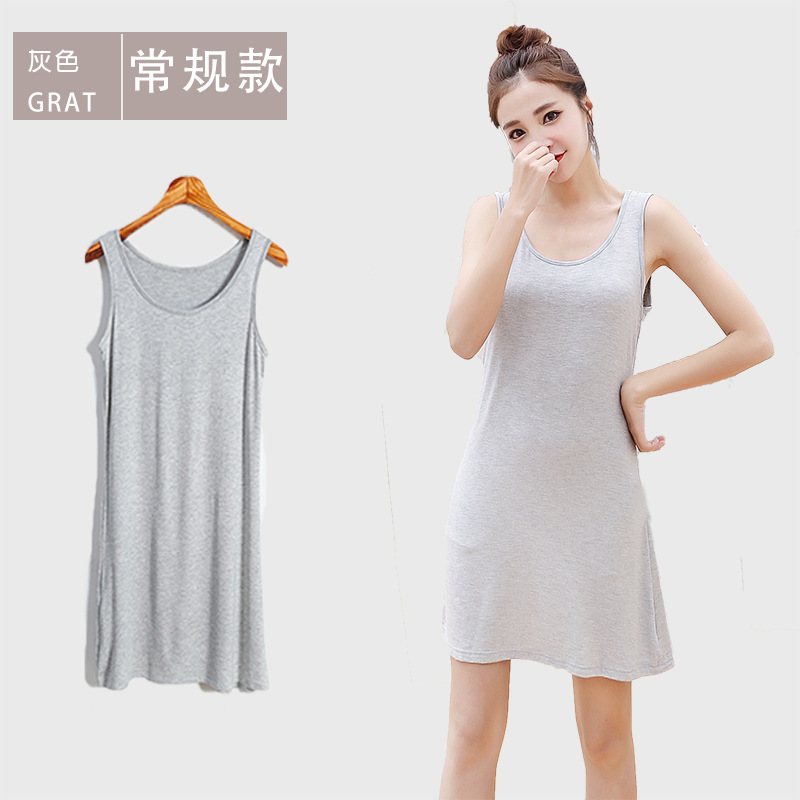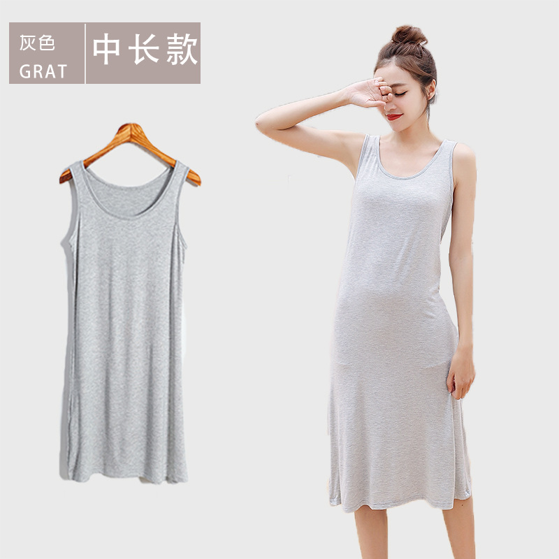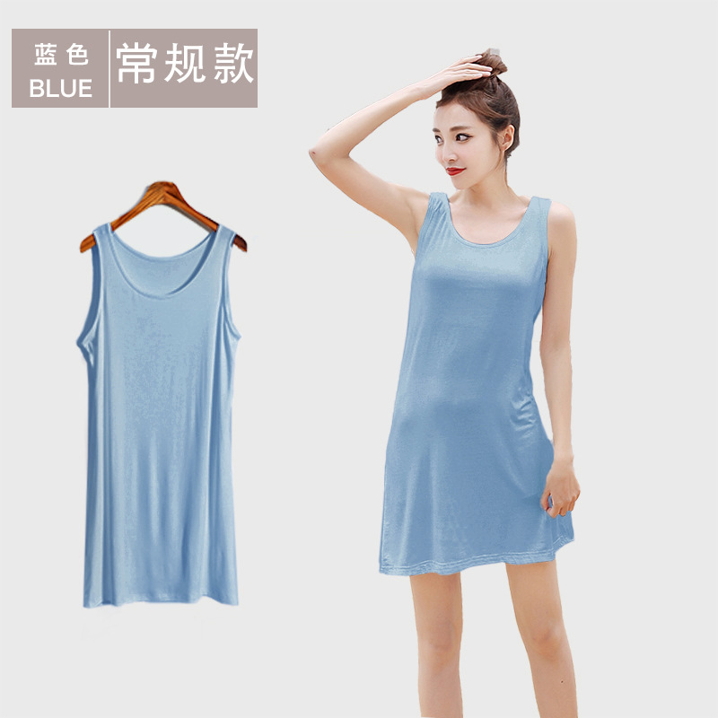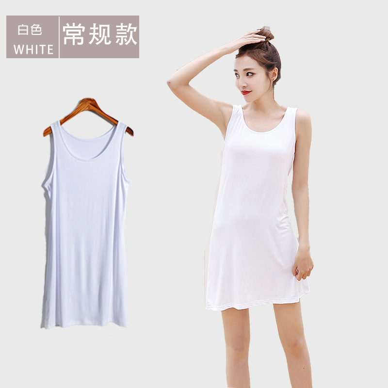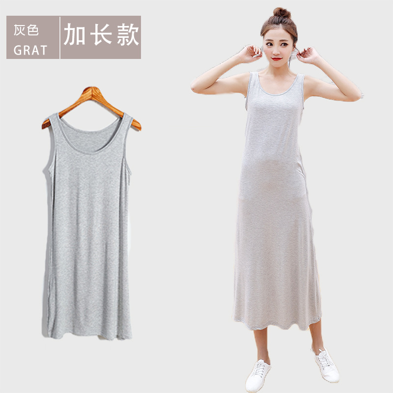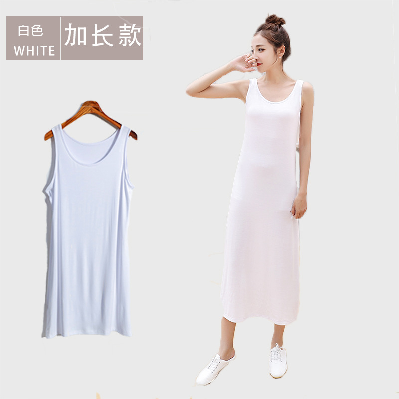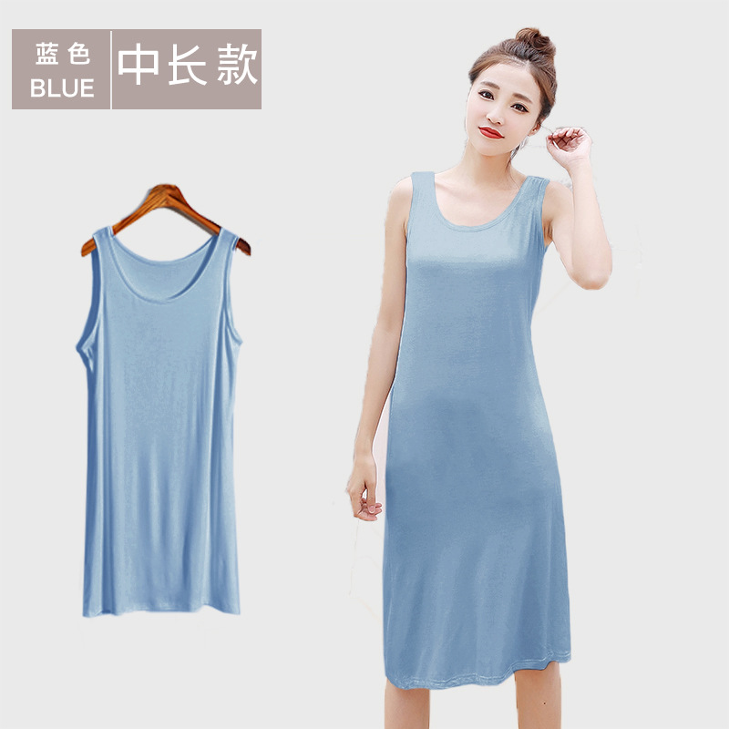 40 짠 여름 모달 원피스 중간 길이 여성용 베이스 내부 페티코트 민소매 탑 느슨한 겉옷 탱크 원피스스토어 가기