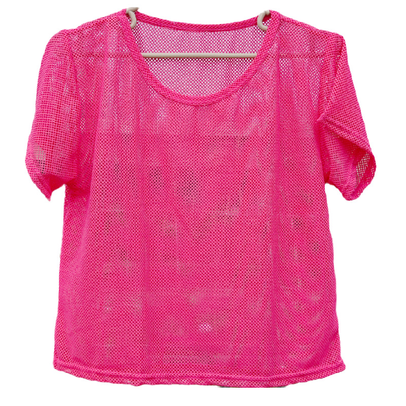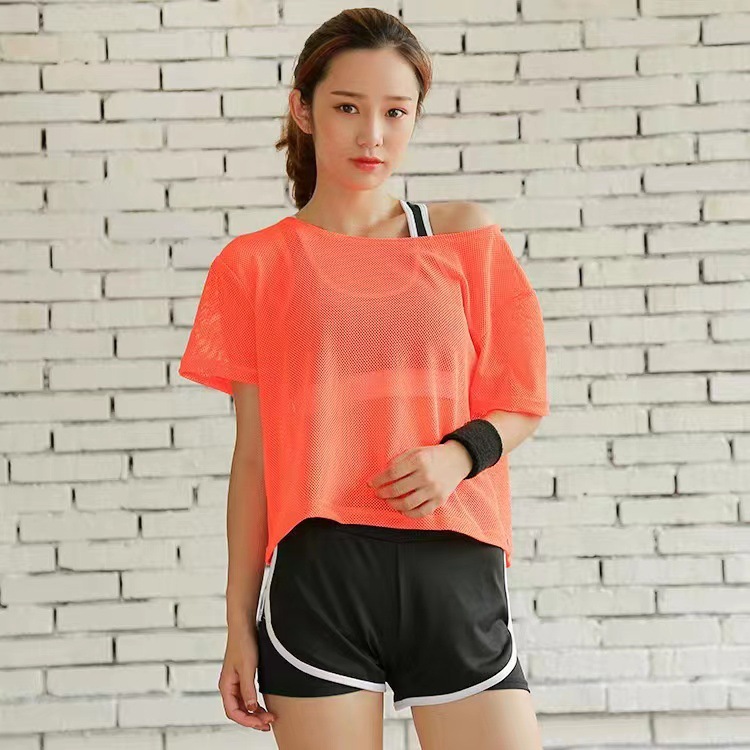 새로운 피트니스 여성의 느슨한 반팔 달리기 관점 중공 스포츠 메쉬 의류 메쉬 통기성 속건 요가 의류