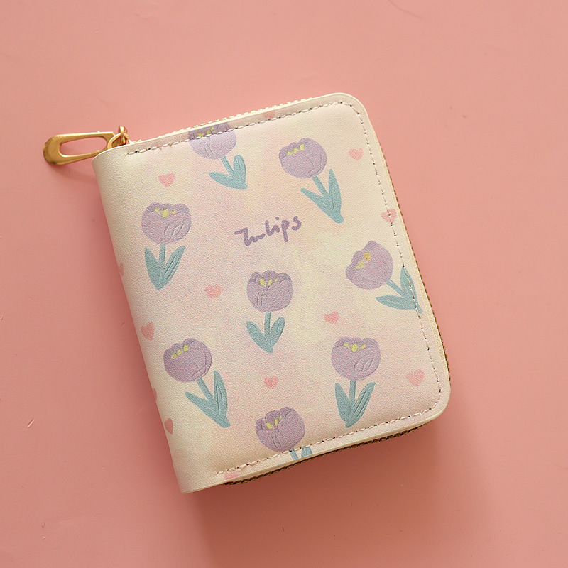• 짧은 지퍼 지갑, 작은 튤립