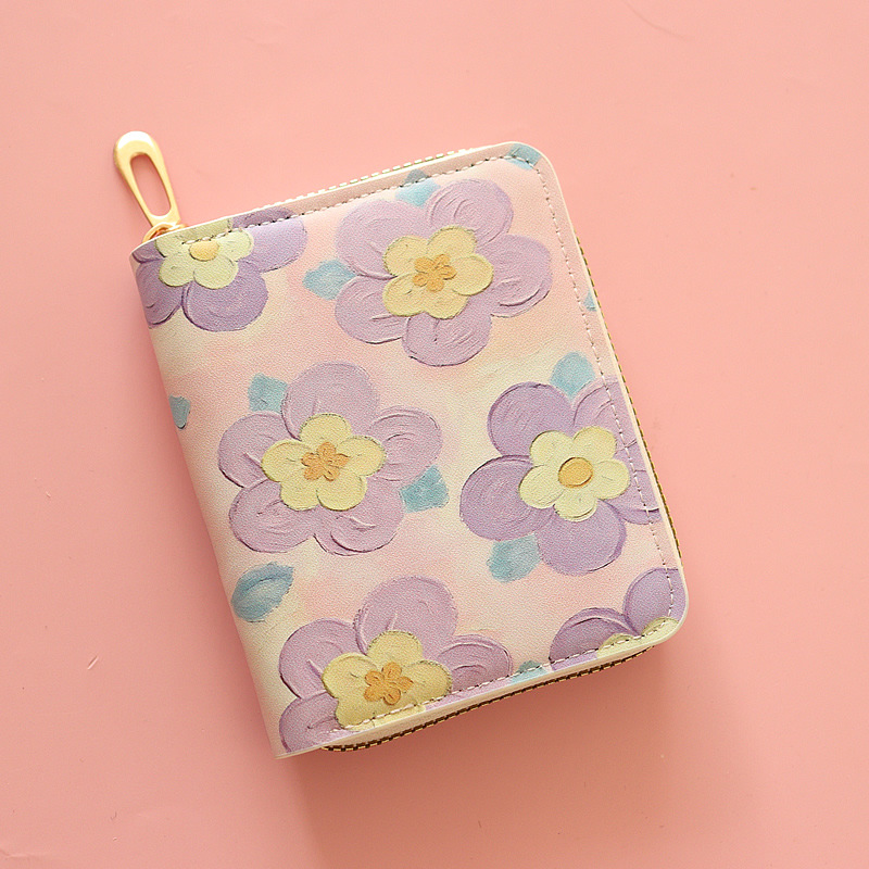 • 짧은 지퍼 지갑, 보라색 해바라기
