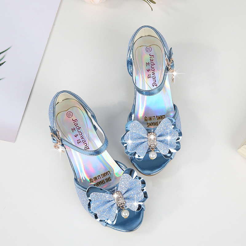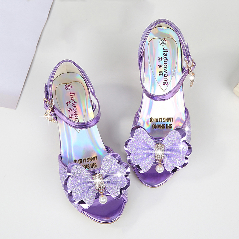2025 여름 새 어린 소녀 여름 크리스탈 신발 소녀 샌들 어린이 하이힐 한국어 스타일 물고기 입 공주 신발스토어 가기