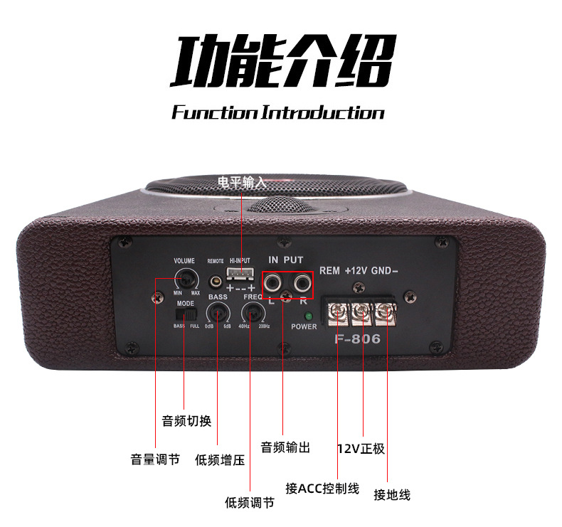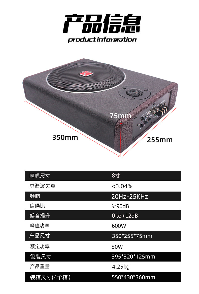 고음 활성 가죽 질감 오디오 8inch 자동차 초박형 서브우퍼를 갖춘 고출력 자동차 12V를 직접 판매하는 제조업체스토어 가기