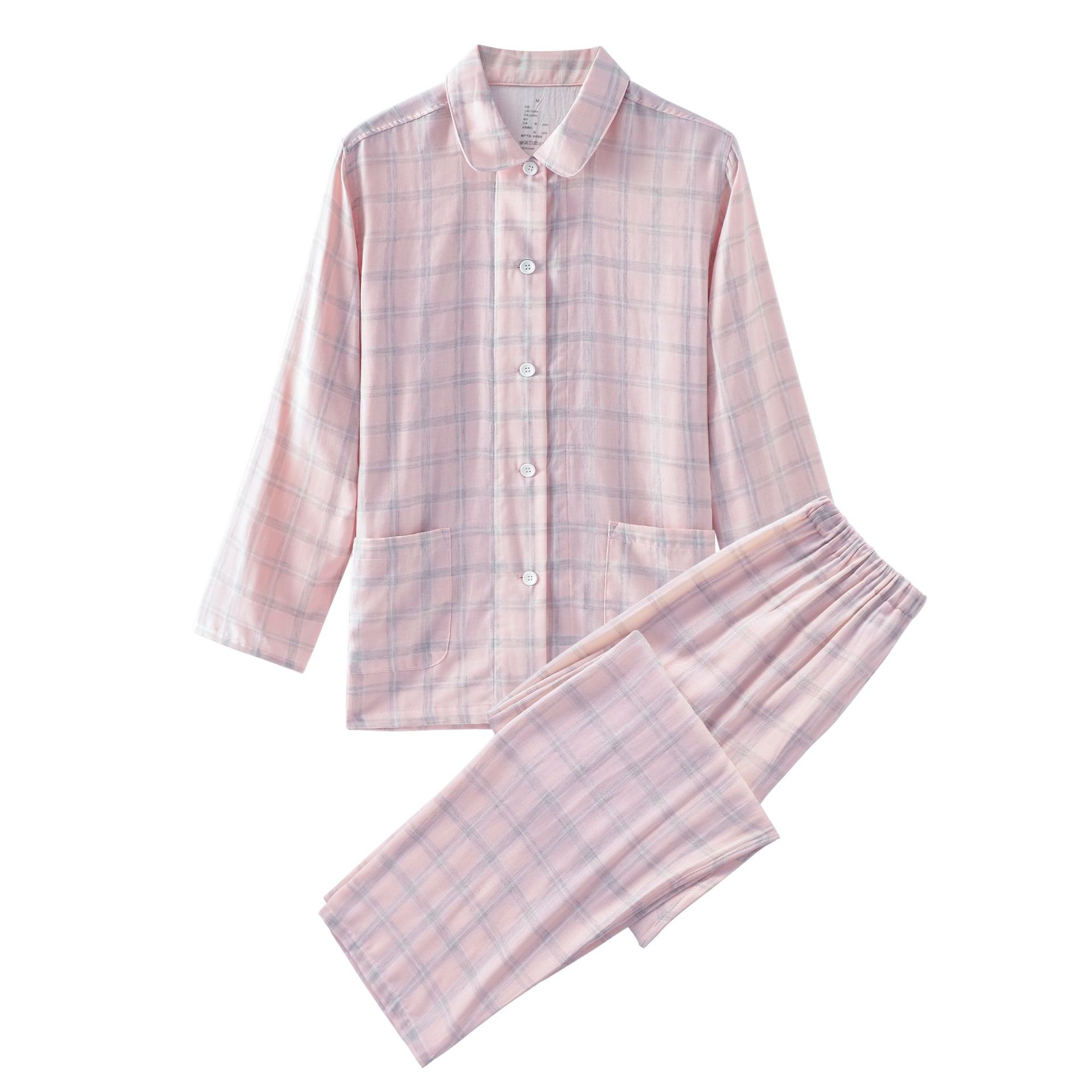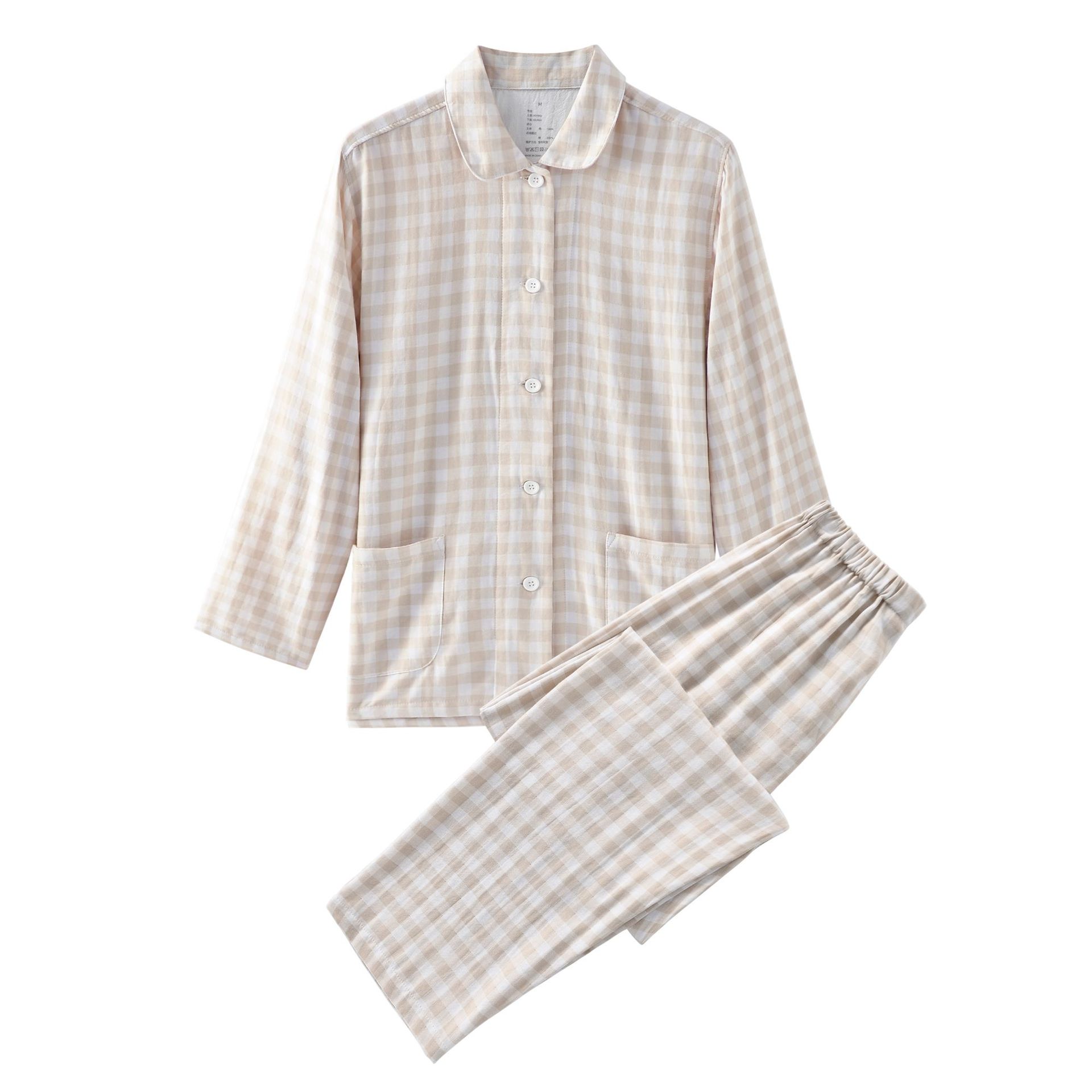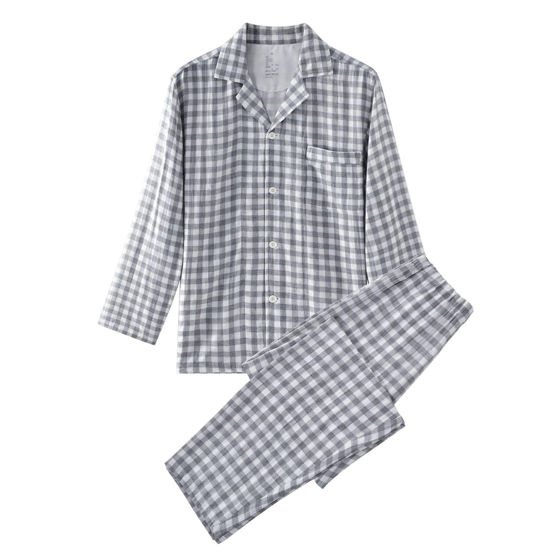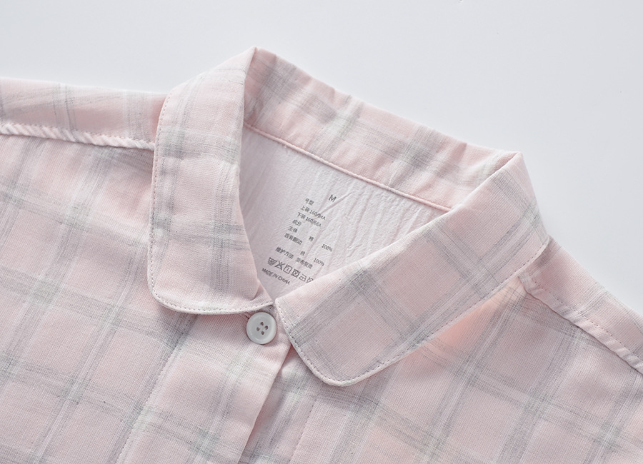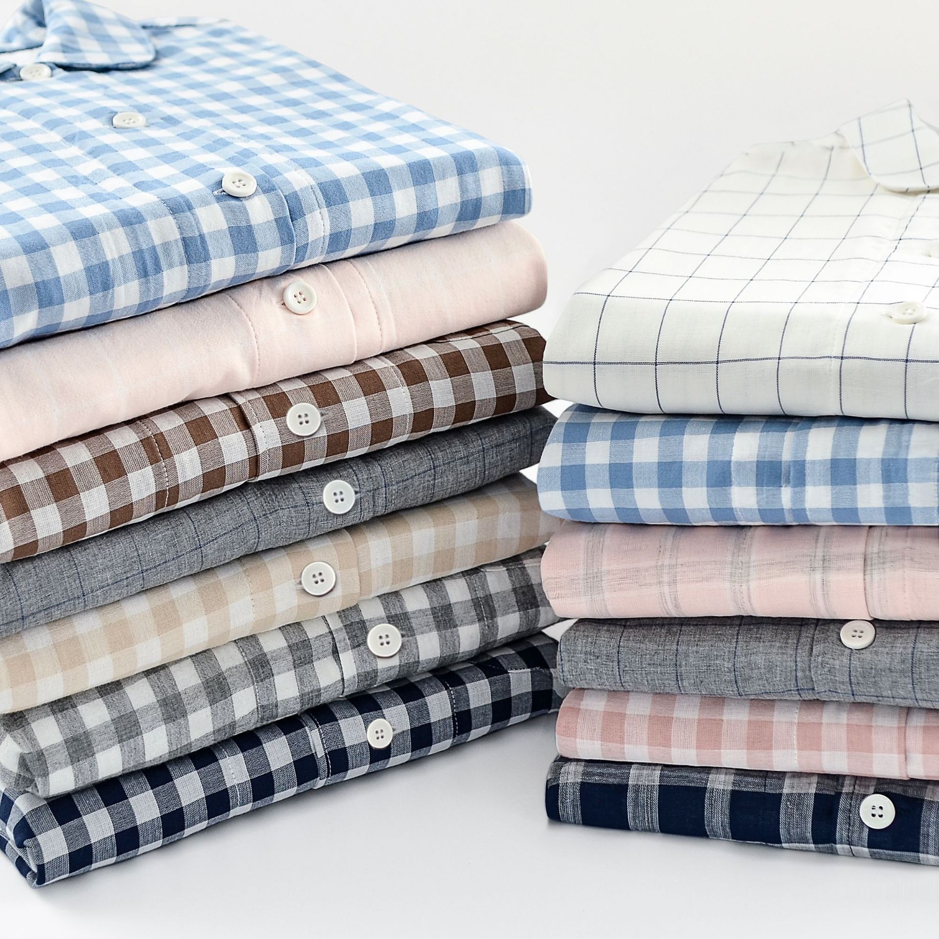 2024 비 인쇄 스타일 면 더블 레이어 원사 파자마 격자 무늬 홈웨어 커플 남녀 홈 웨어 봄과 가을 세트스토어 가기