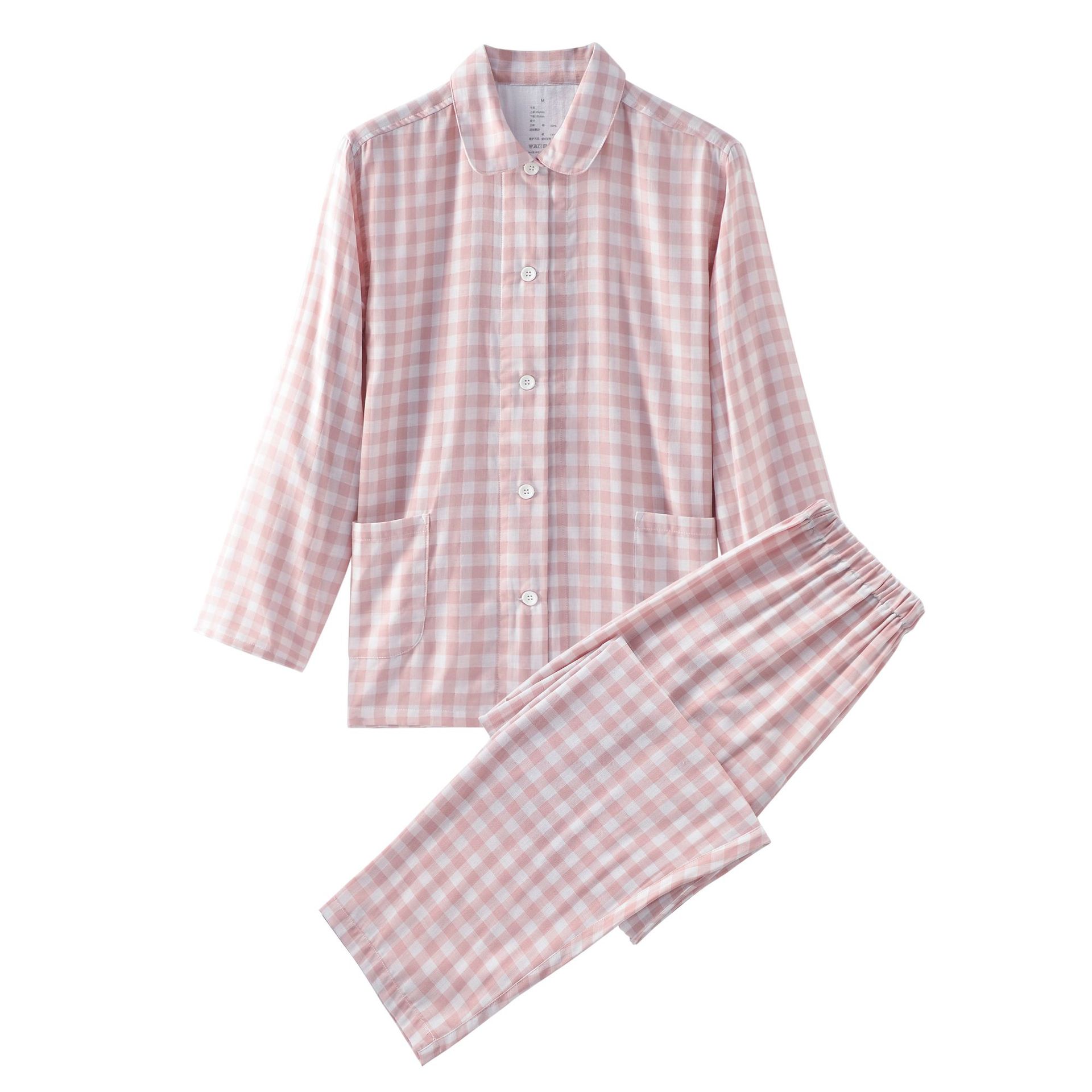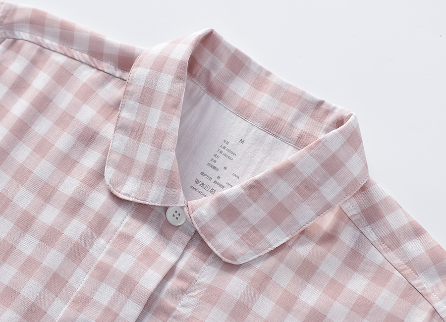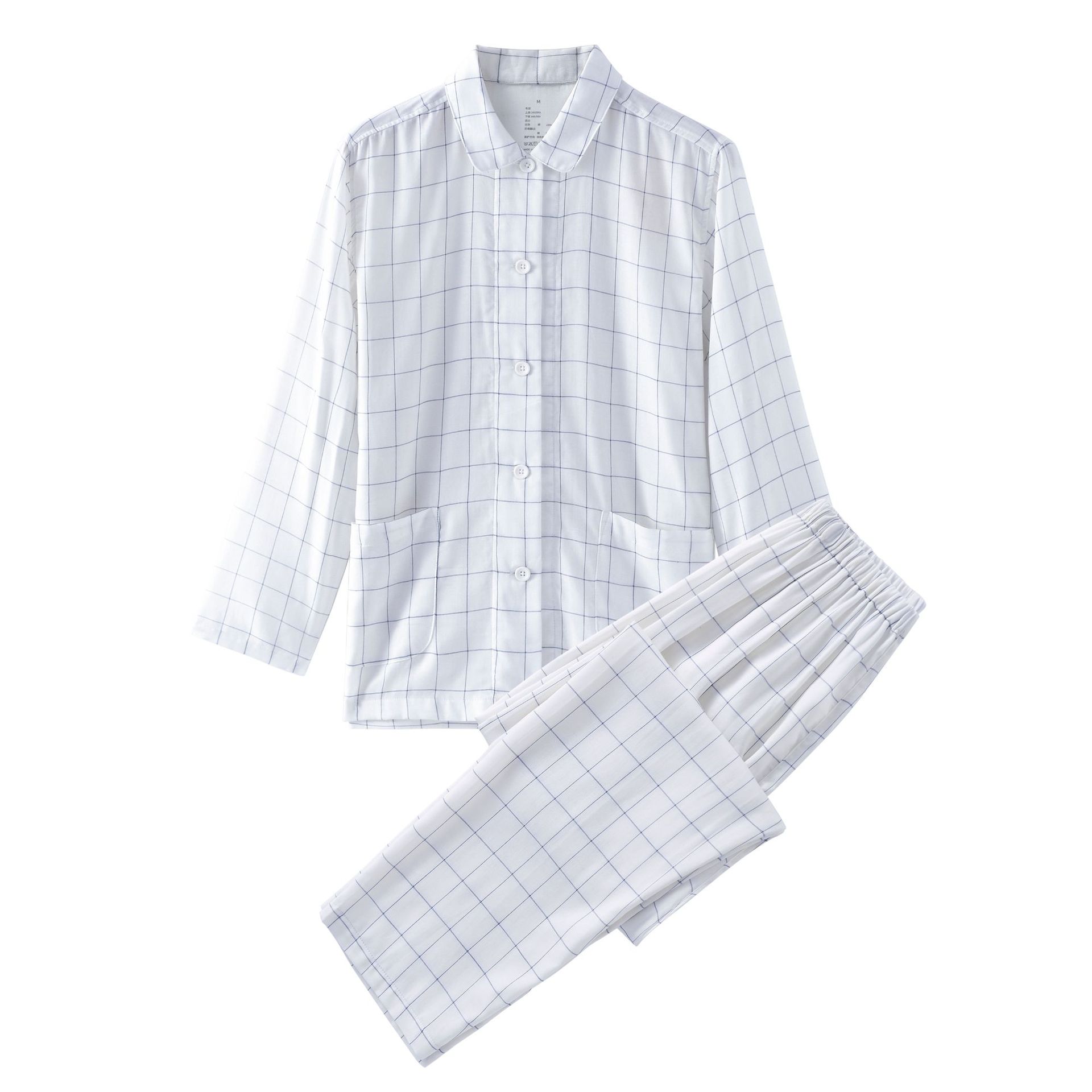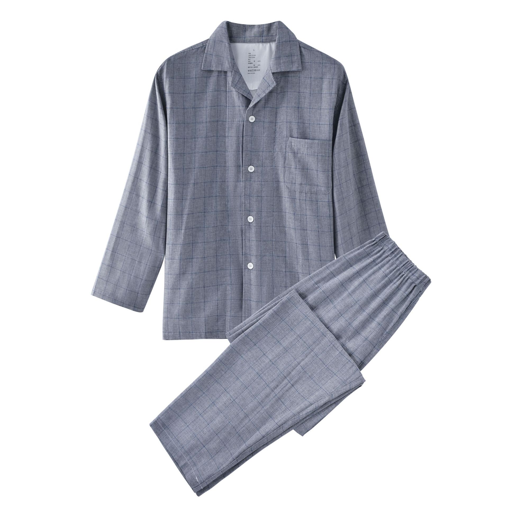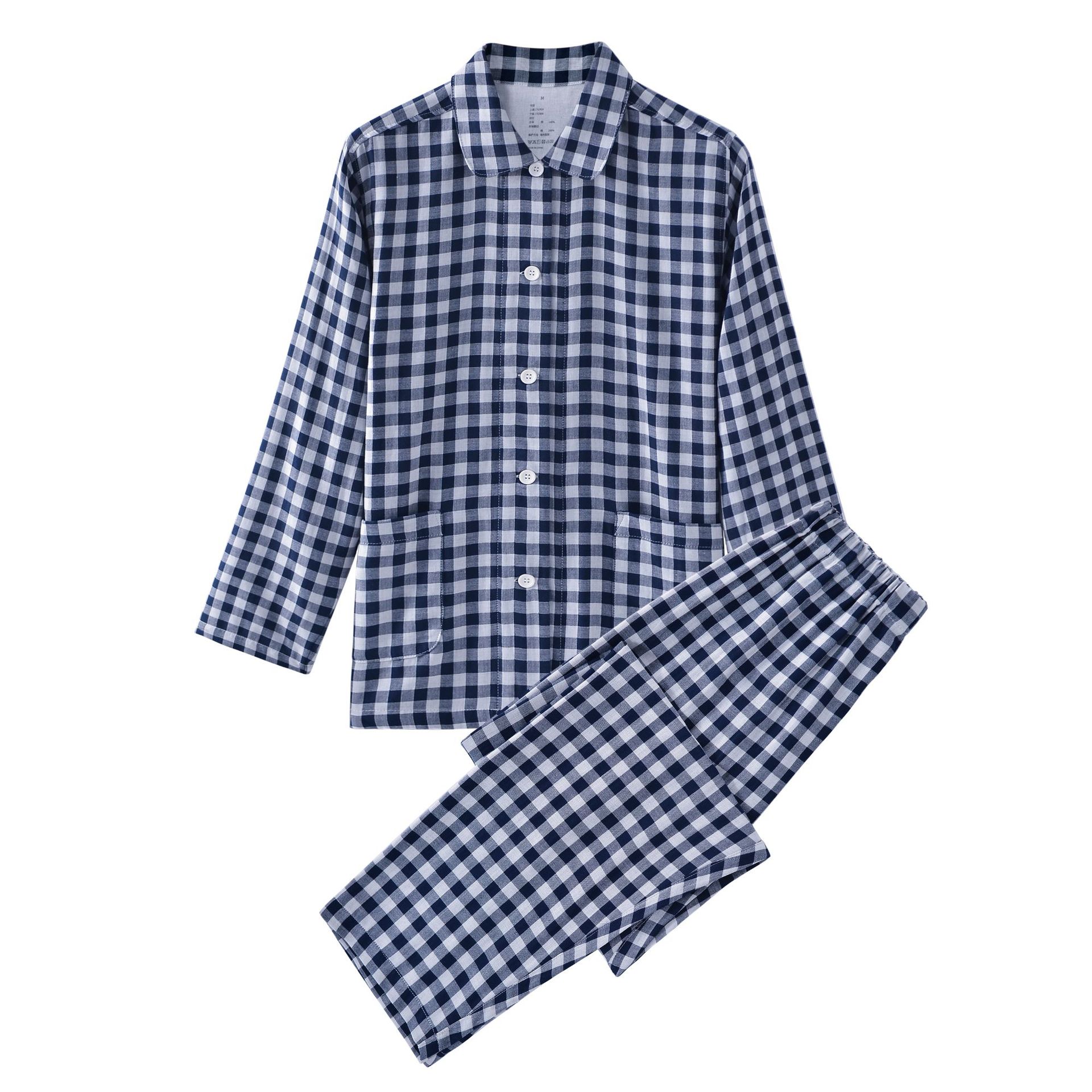 2024 비 인쇄 스타일 면 더블 레이어 원사 파자마 격자 무늬 홈웨어 커플 남녀 홈 웨어 봄과 가을 세트스토어 가기