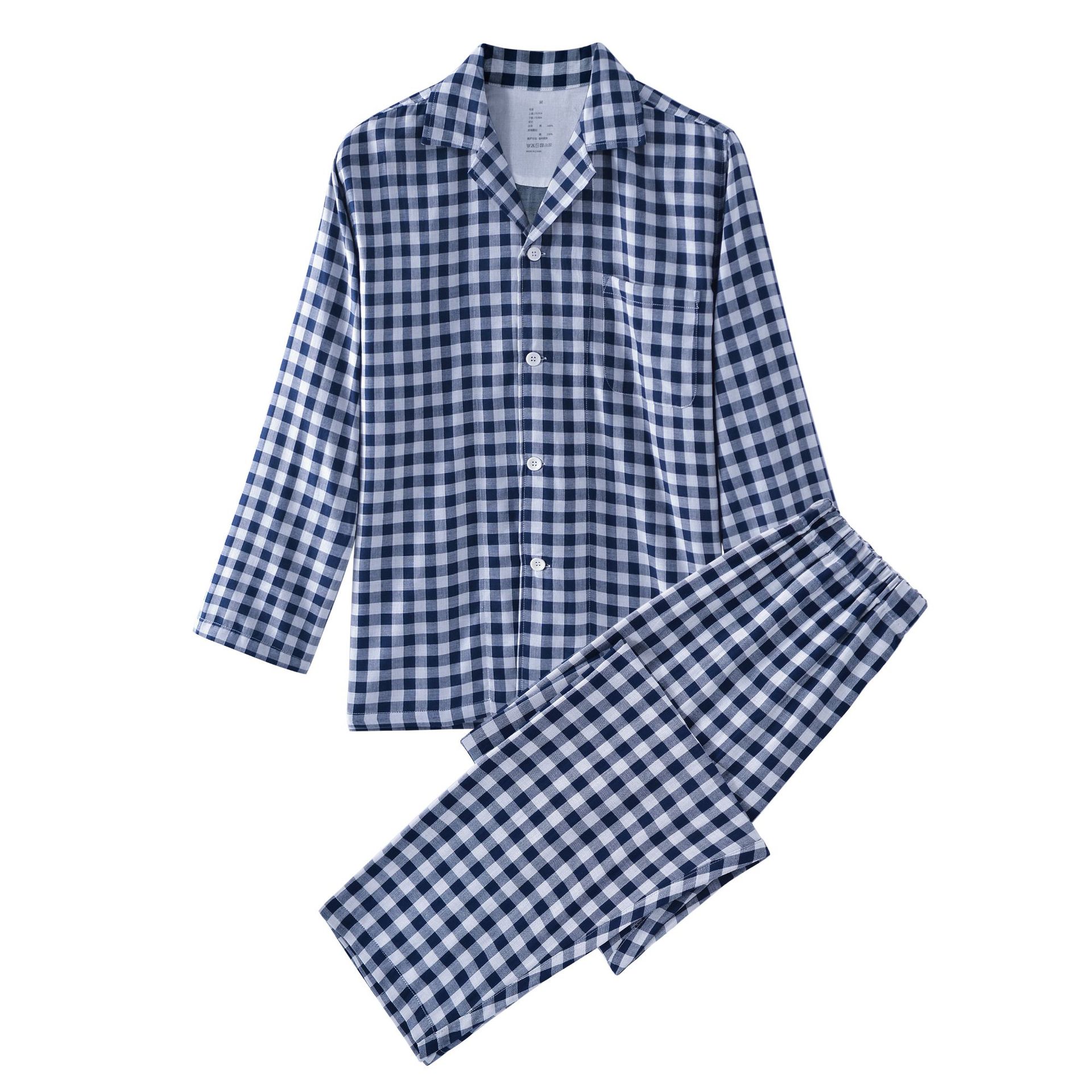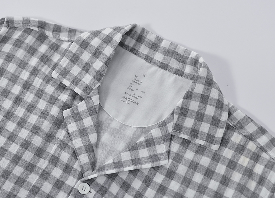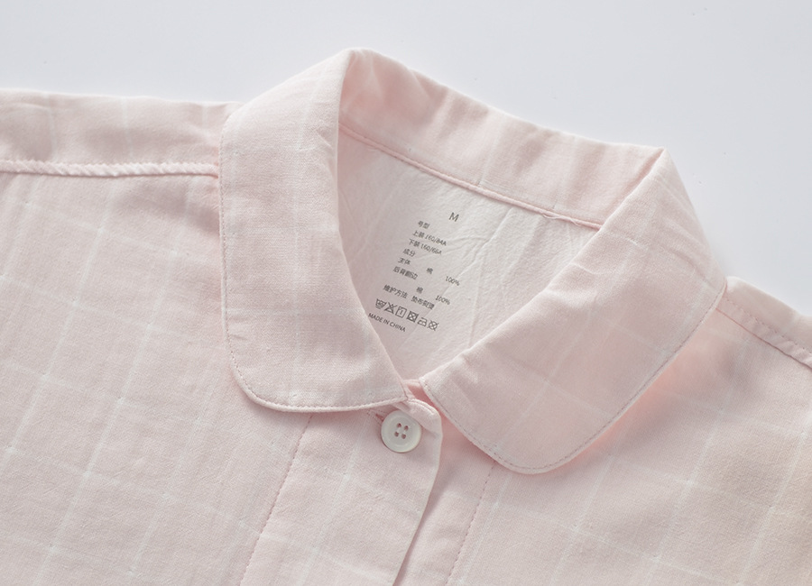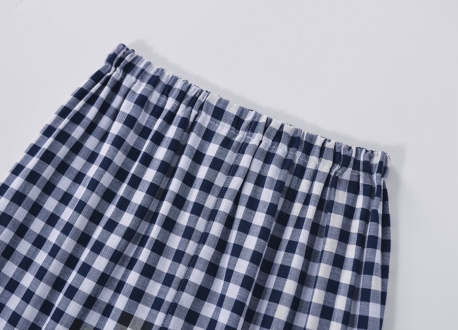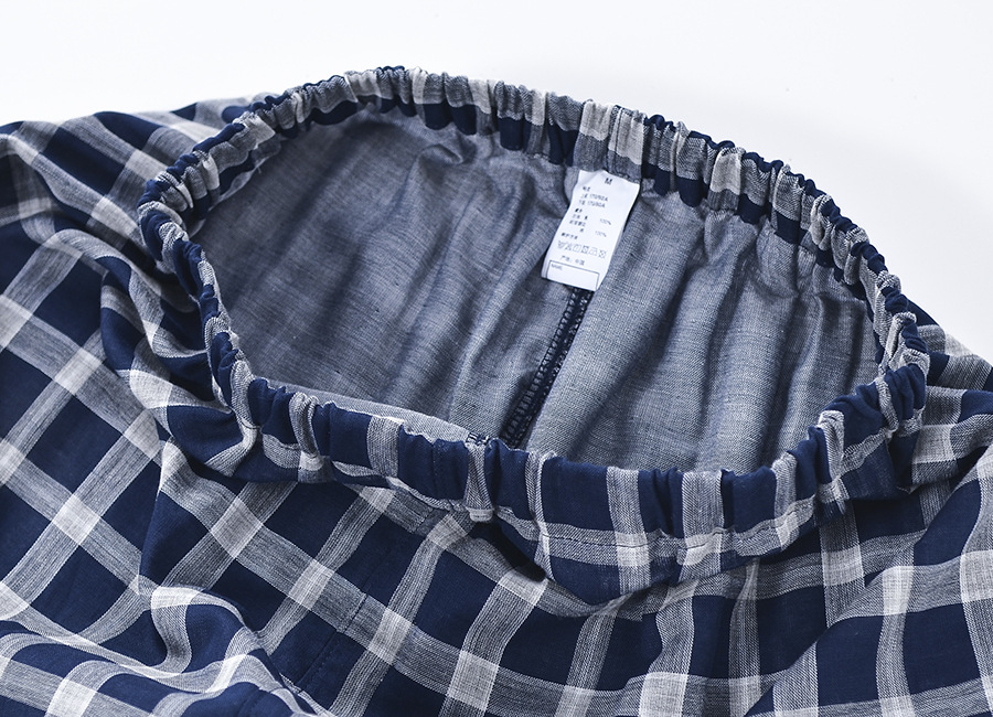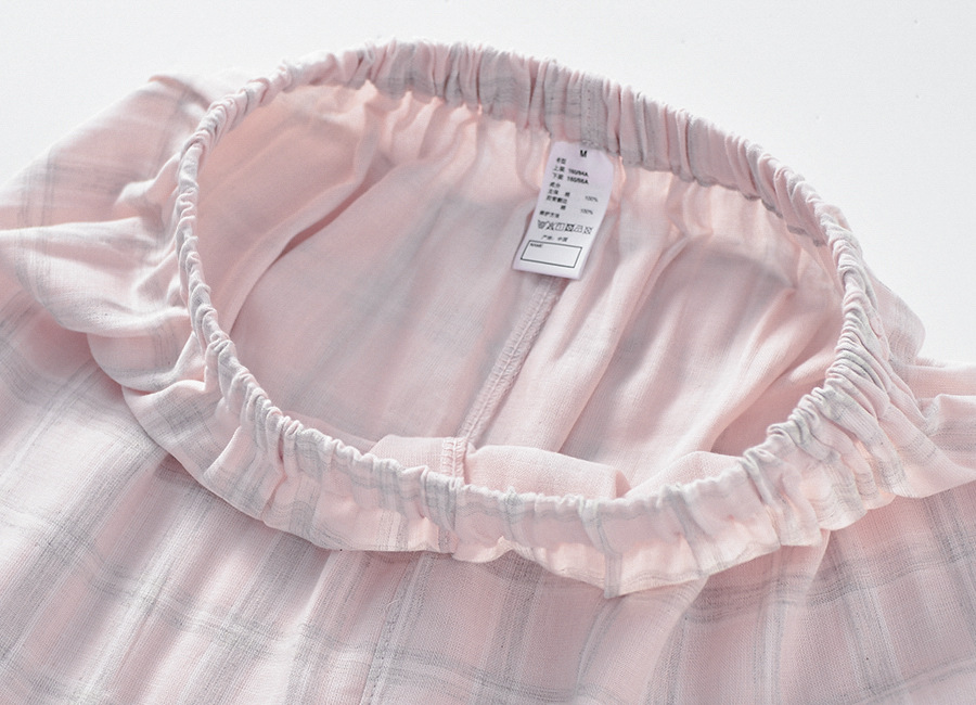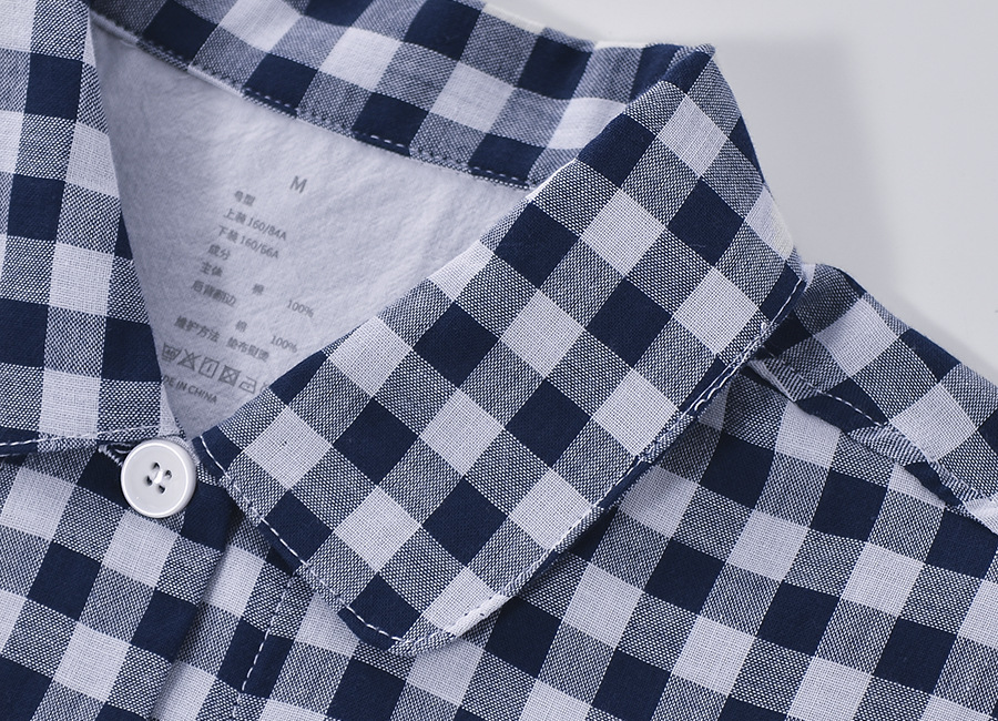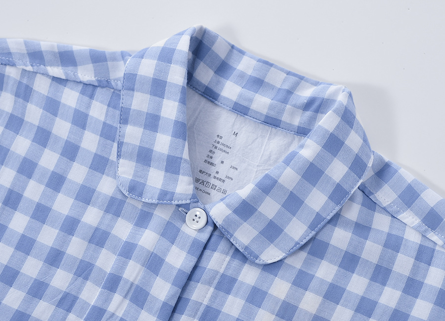 2024 비 인쇄 스타일 면 더블 레이어 원사 파자마 격자 무늬 홈웨어 커플 남녀 홈 웨어 봄과 가을 세트스토어 가기