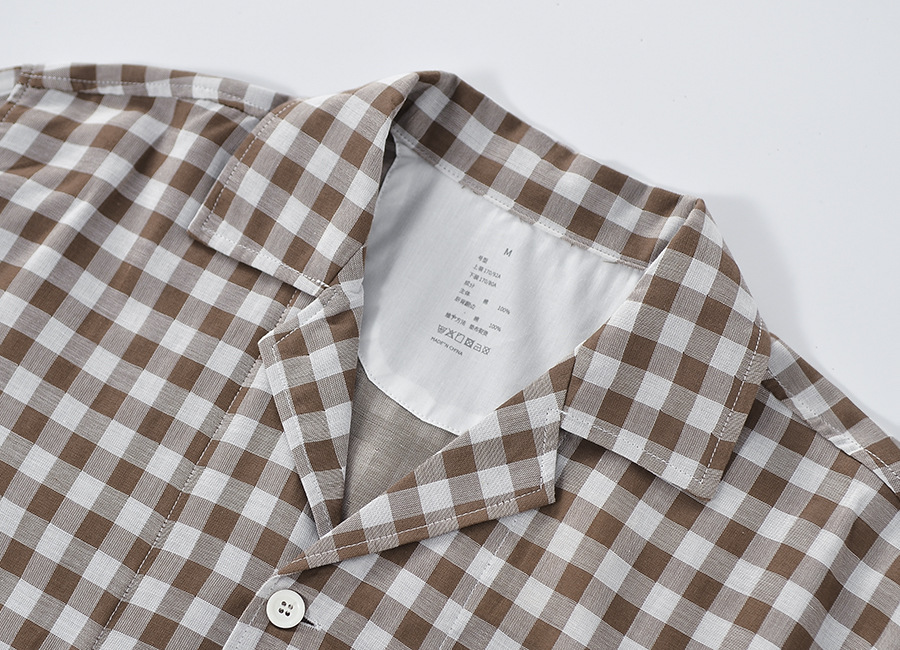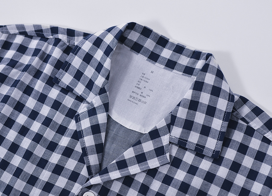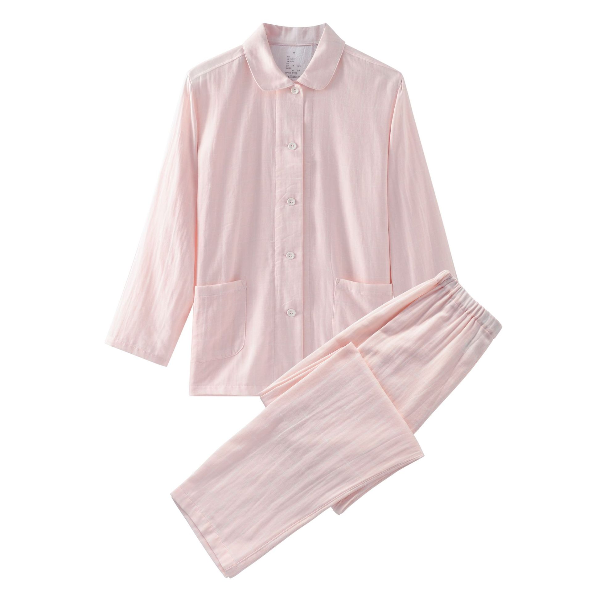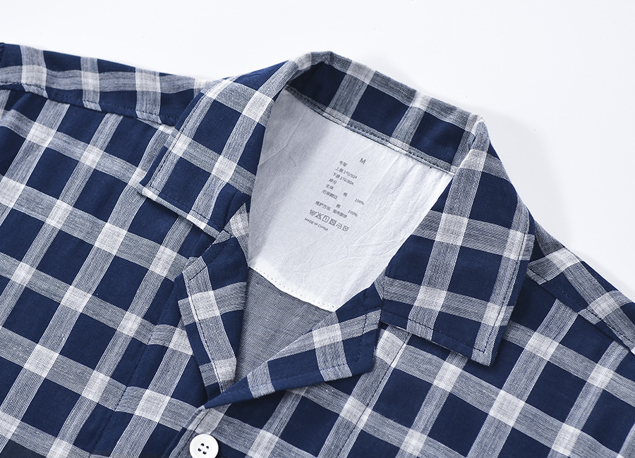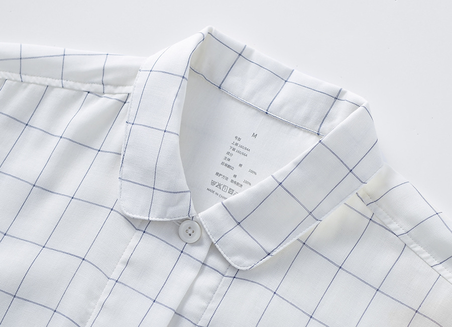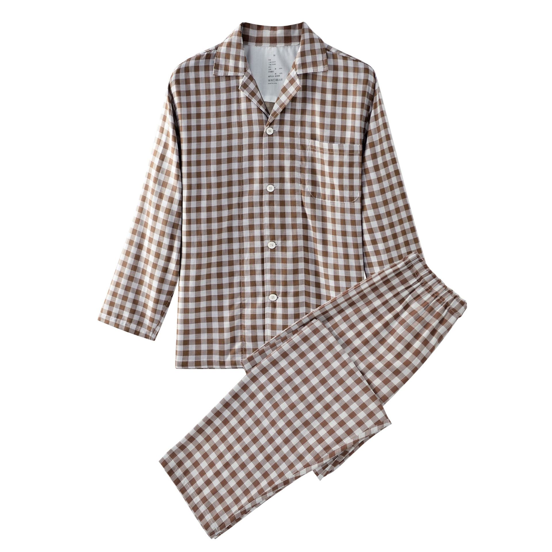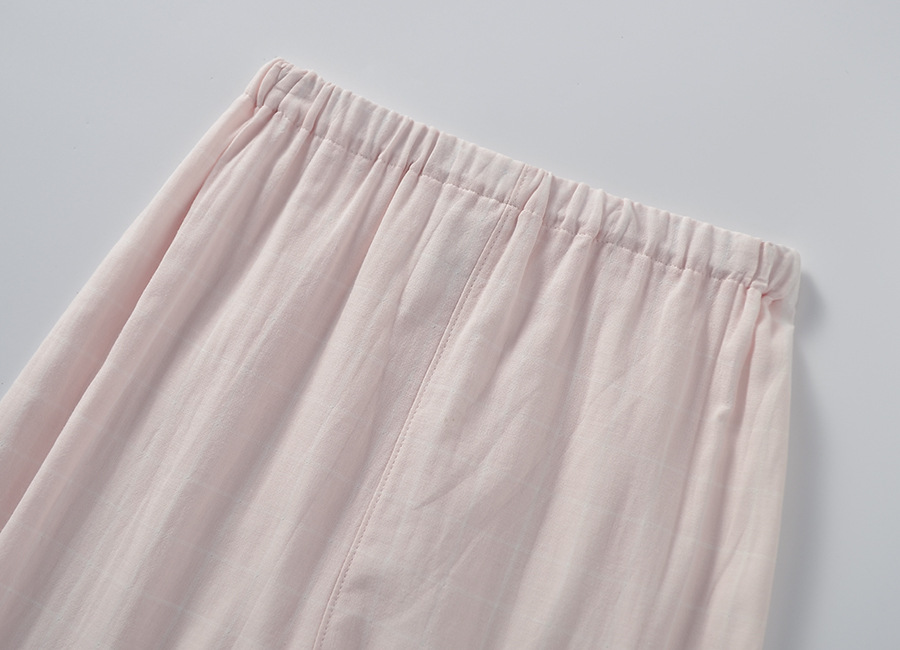 2024 비 인쇄 스타일 면 더블 레이어 원사 파자마 격자 무늬 홈웨어 커플 남녀 홈 웨어 봄과 가을 세트스토어 가기