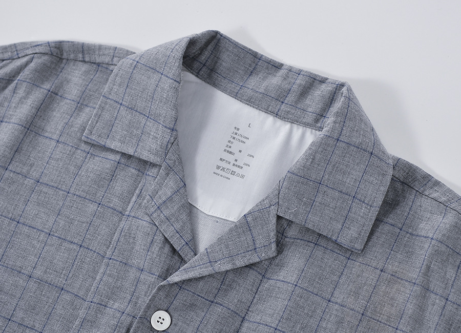 • 라이트 그레이 작은 격자 무늬/남자의 긴 소매