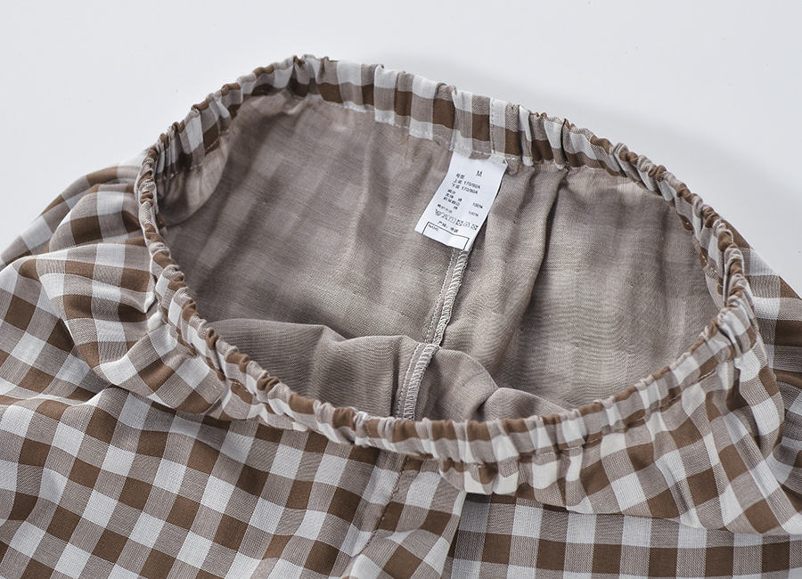 • 라이트 블루 작은 격자 무늬/여성의 긴 소매