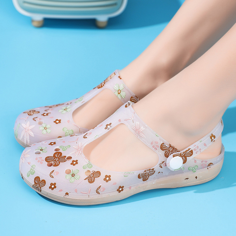 여름 엄마 신발 간호사 샌들 구멍 샌들 편안한 새는 신발 야외 부드러운 단독 여성용 대형 샌들 메쉬 신발스토어 가기