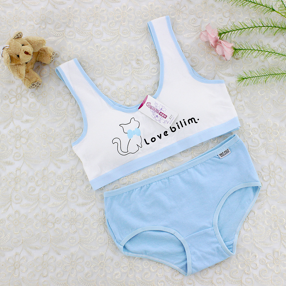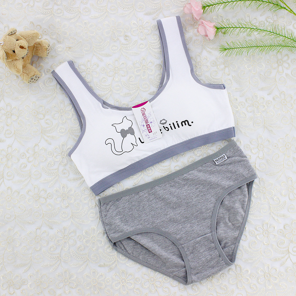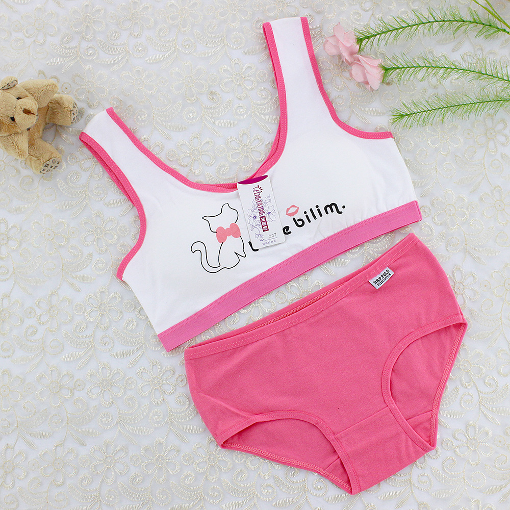 여아 스포츠 브라 단색 면 개발 조끼 유형 없음 강철 반지 초등학생 중학교 여아 속옷 세트
