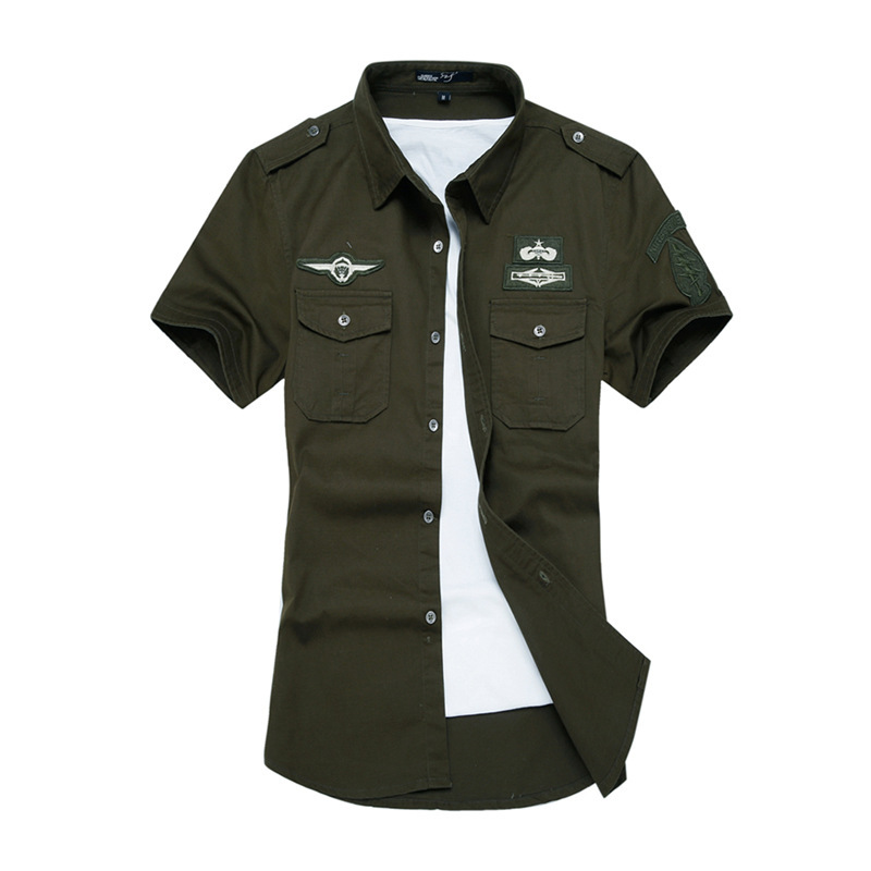 夏季男士短袖衬衫大码男装宽松纯棉休闲半袖薄款军装工装户外衬衣