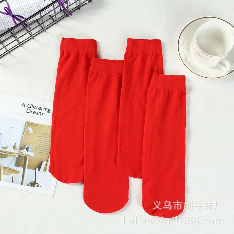 남성과 여성을위한 빨간 실크 스타킹 중간 길이 스타킹 행복한 해 빨간 얇은 일회용 양말 빨간 양말 웨딩 양말 여름스토어 가기
