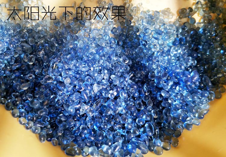 1份一斤,高温烧制不掉色,水里放鱼缸灯光照射后非常好看!!铺的越厚蓝色显现的越明显!!