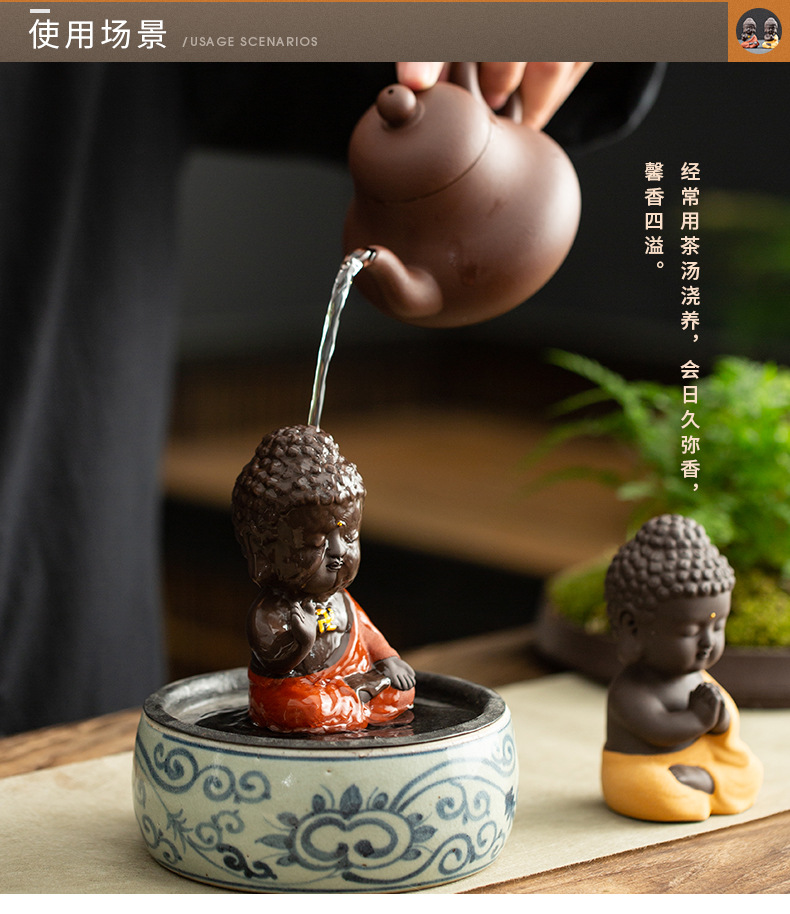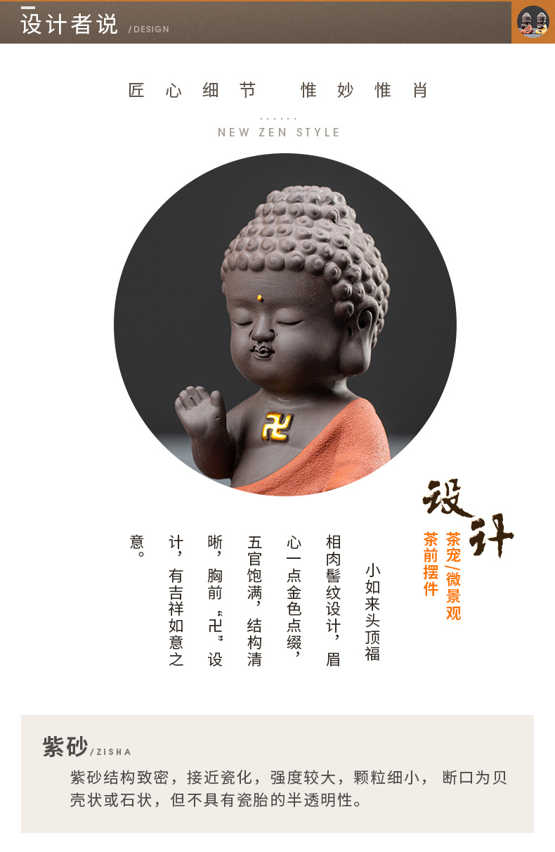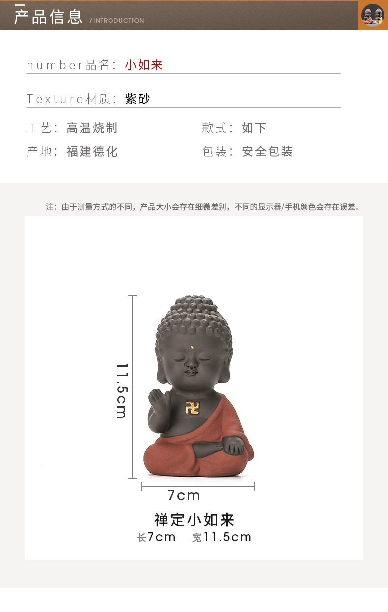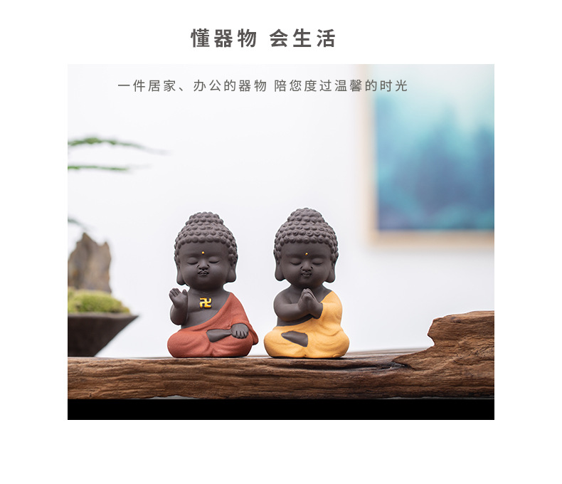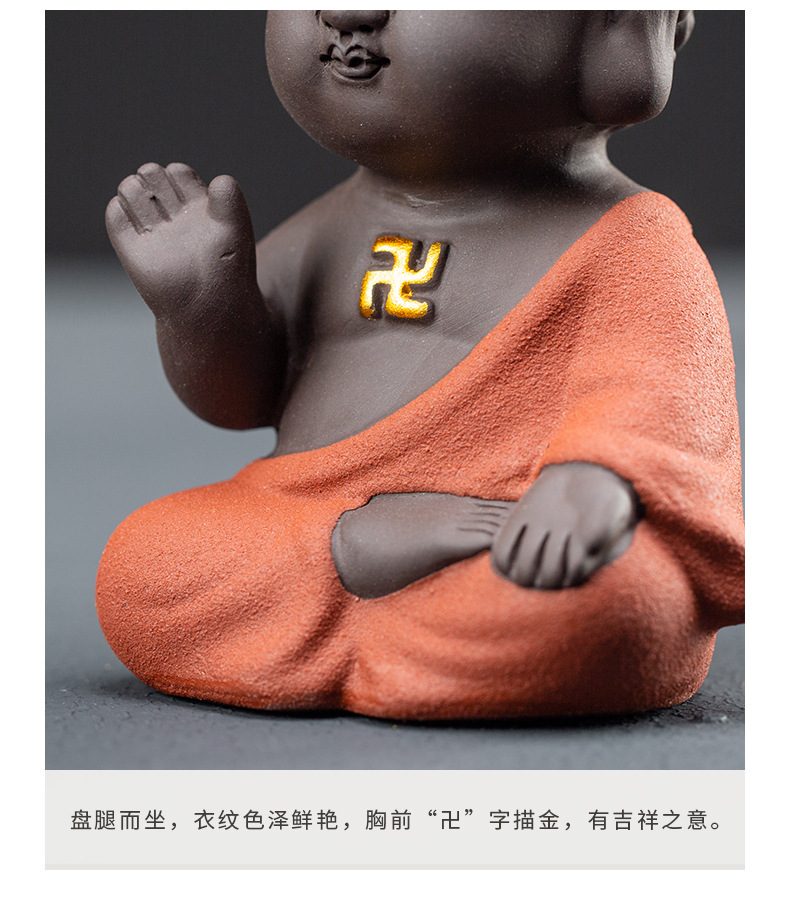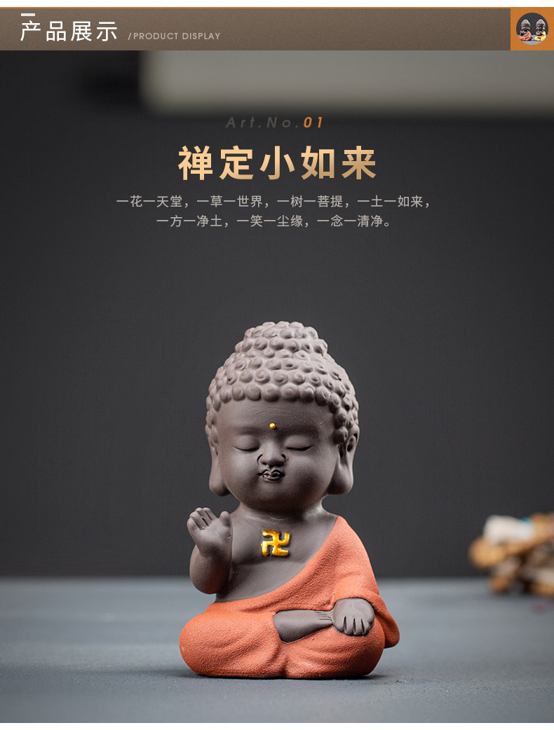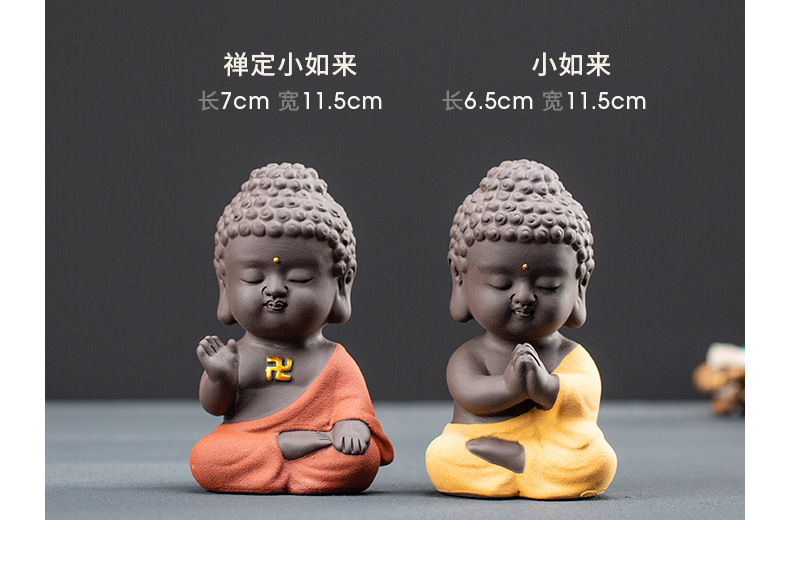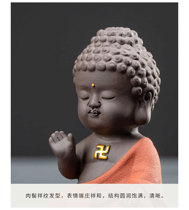 Yixiuyuan 보라색 모래 도자기 차 애완 동물 크리 에이 티브 귀여운 작은 여래 자동차 보안 부처님 동상 장식 자동차 장식품스토어 가기