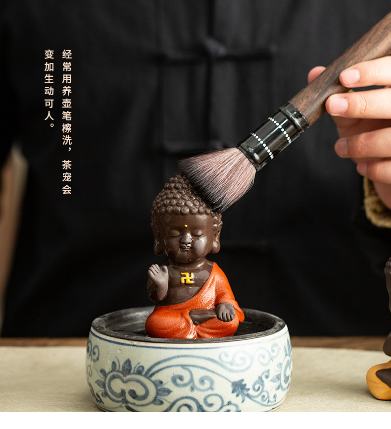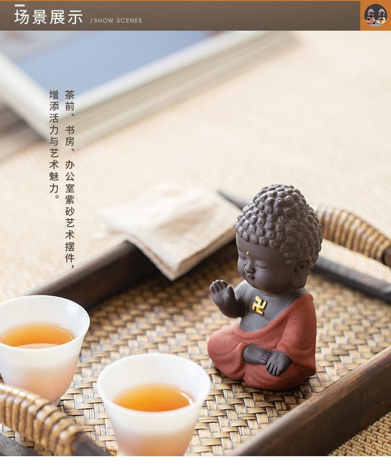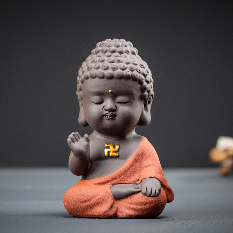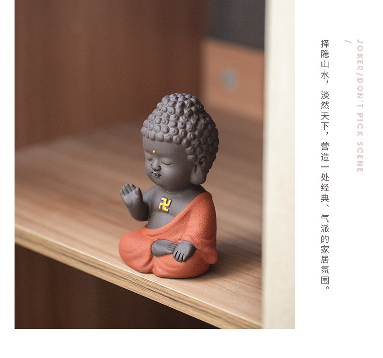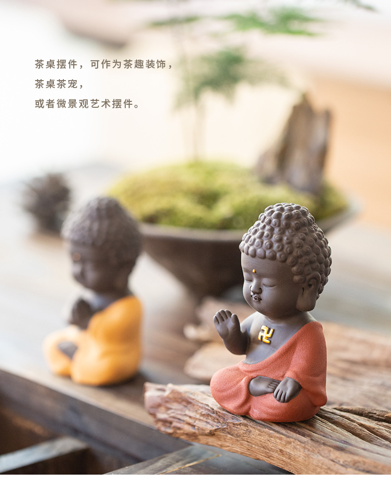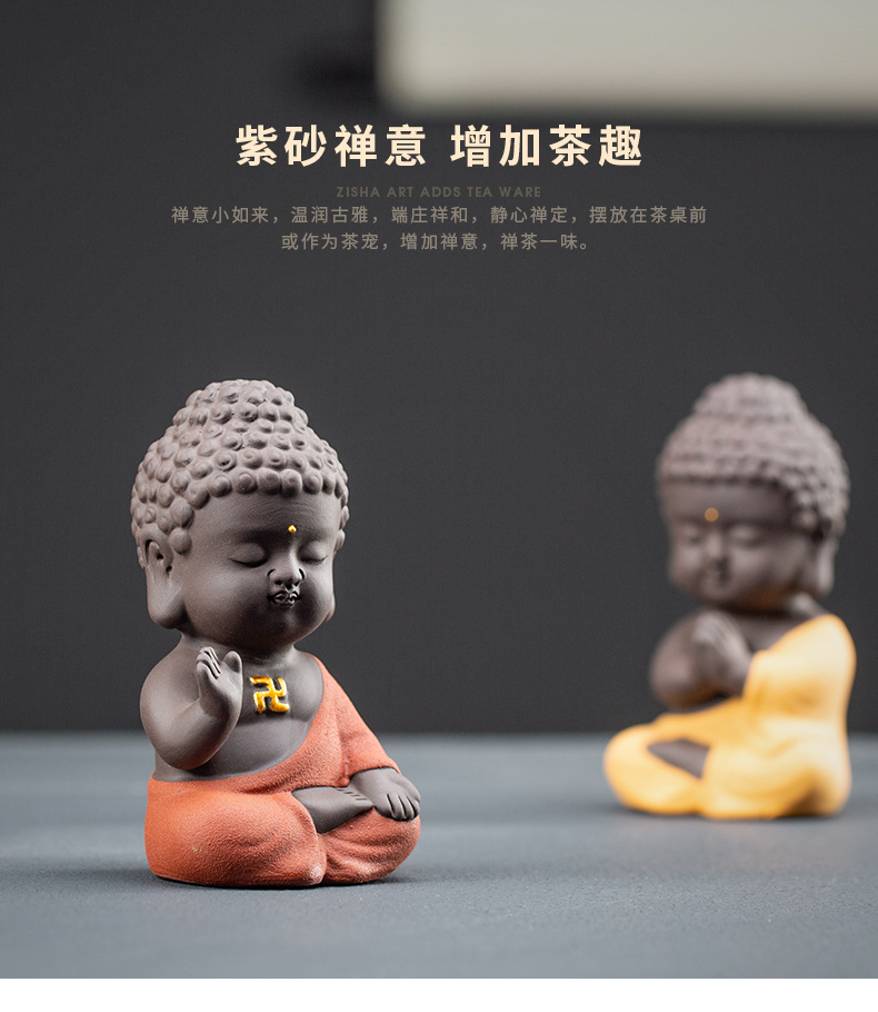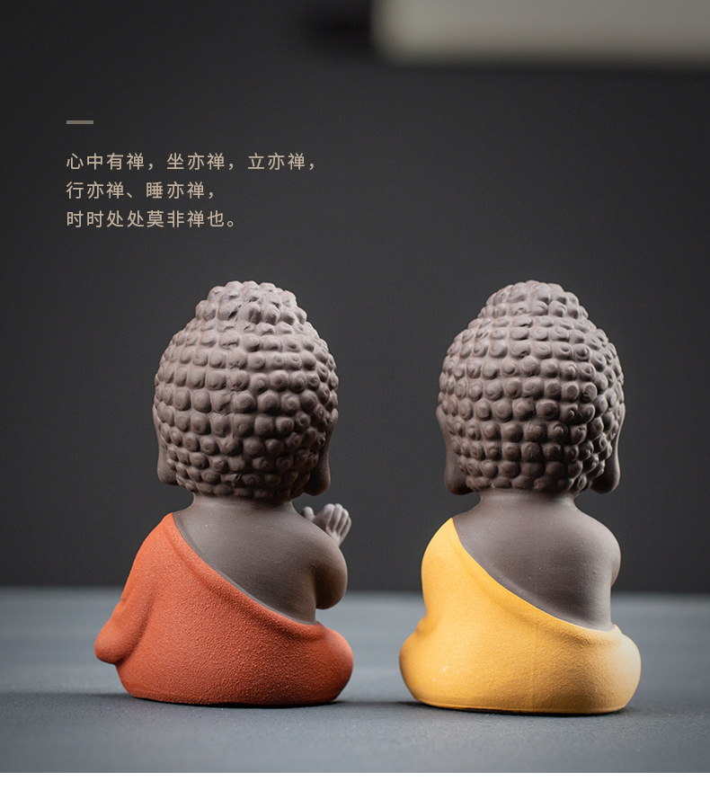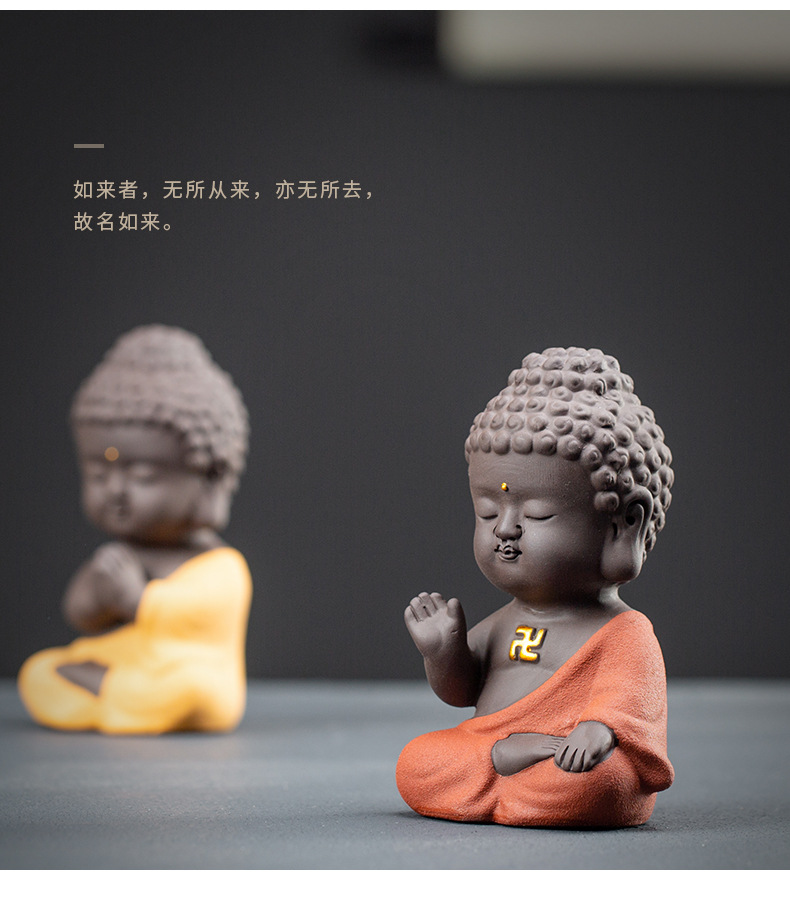 Yixiuyuan 보라색 모래 도자기 차 애완 동물 크리 에이 티브 귀여운 작은 여래 자동차 보안 부처님 동상 장식 자동차 장식품