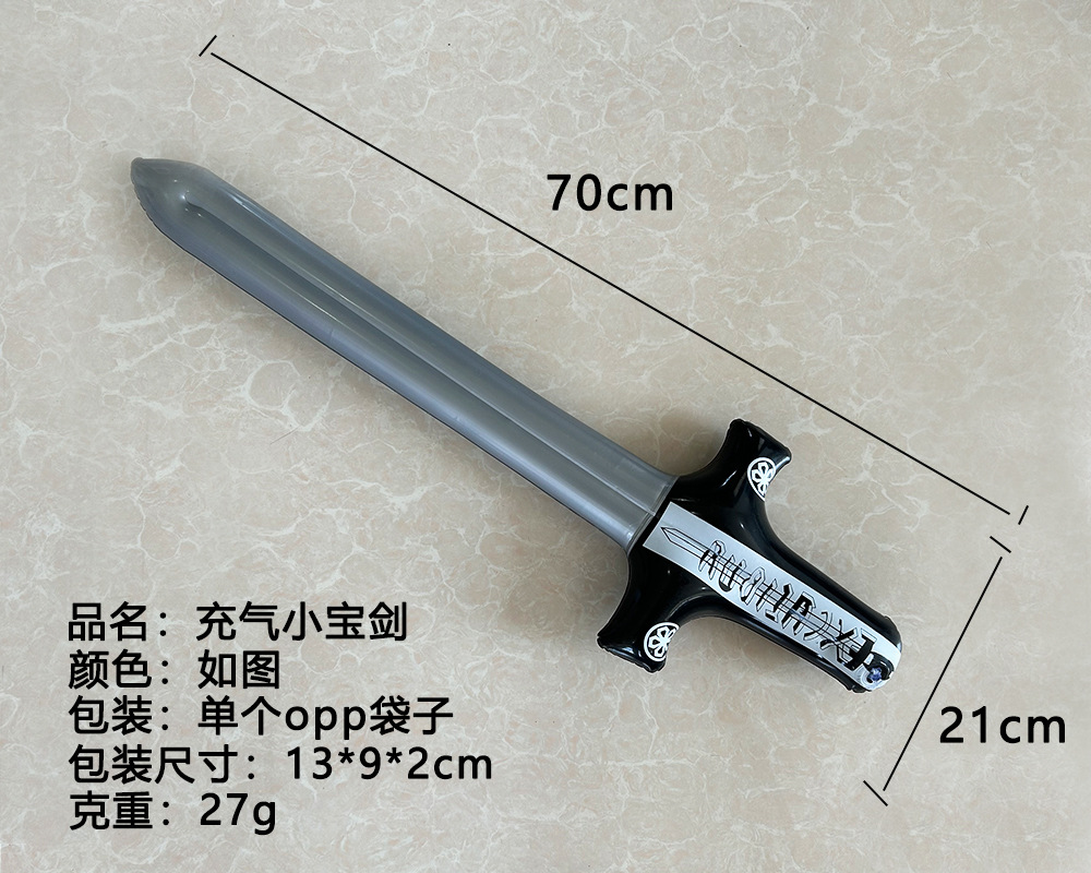 出口欧美的充气宝刀,包装是单个opp袋子包装,我们pvc充气系列产品确保每个都是充气检测合格后才会包装出厂销售的,所以质量敬请放心。
