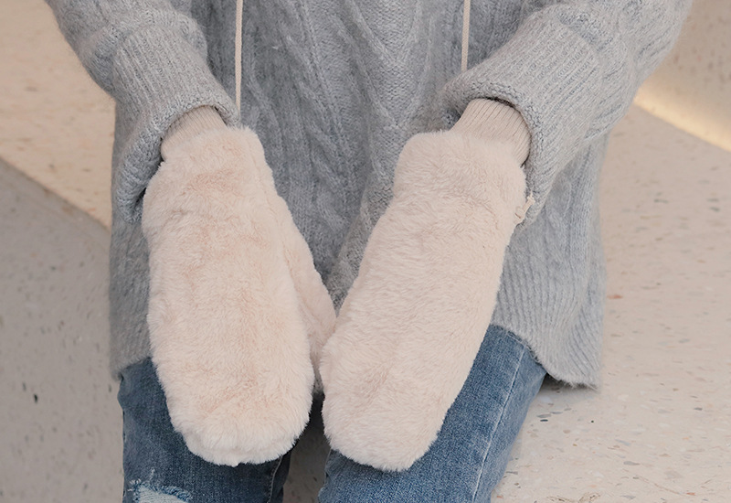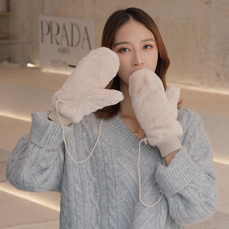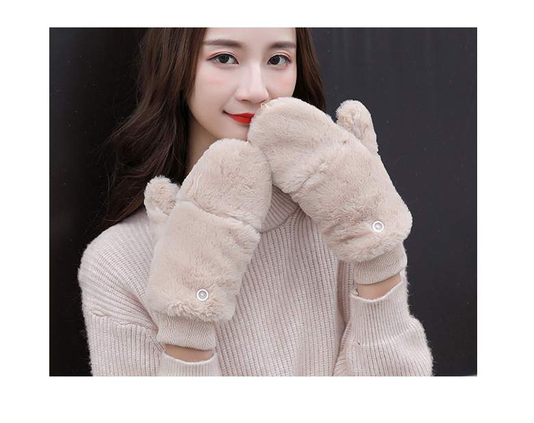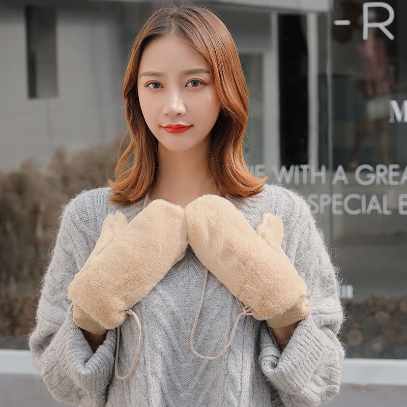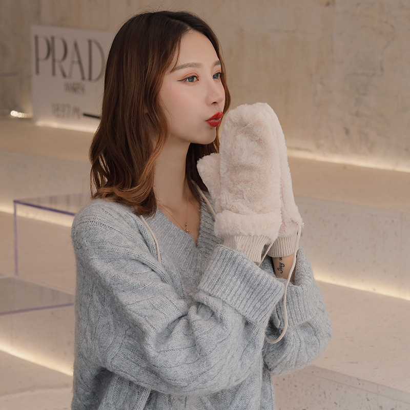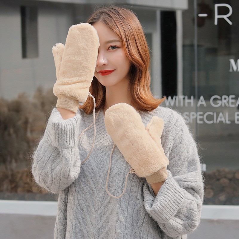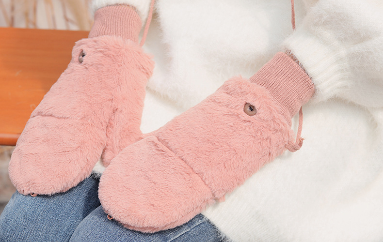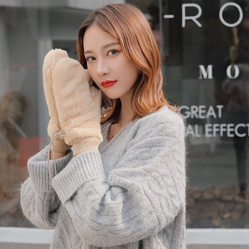 한국식 봉제 단색 장갑 귀여운 학생 따뜻한 이중 두꺼운 반 손가락 플립 커버 장갑 가을과 겨울 여성용