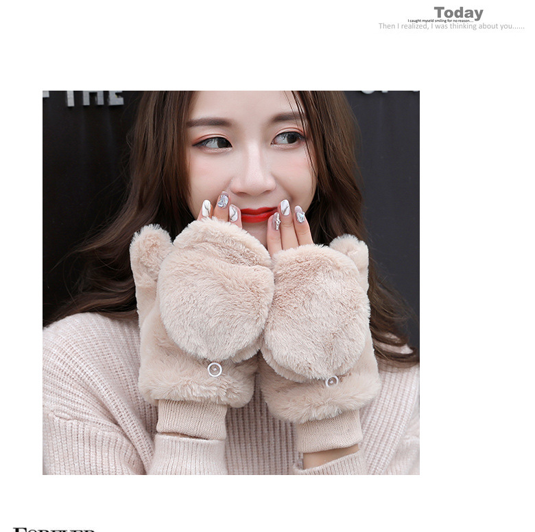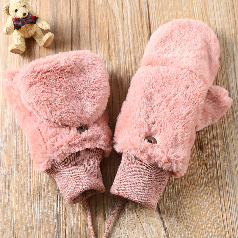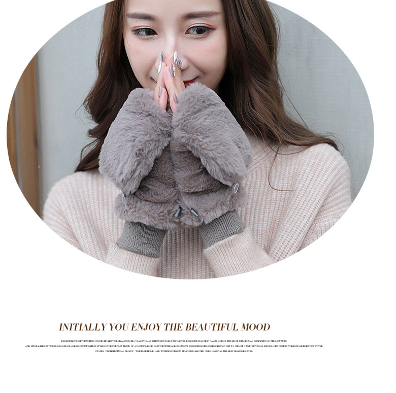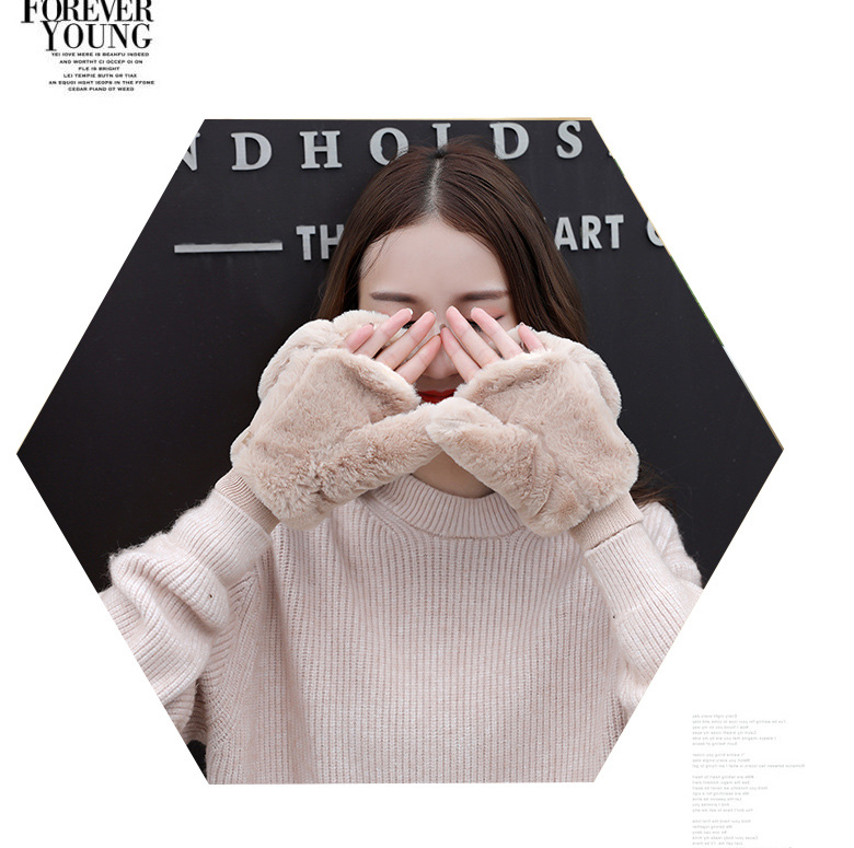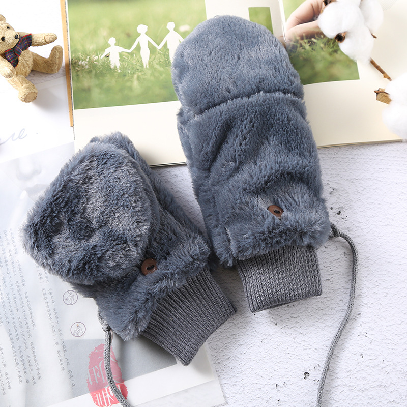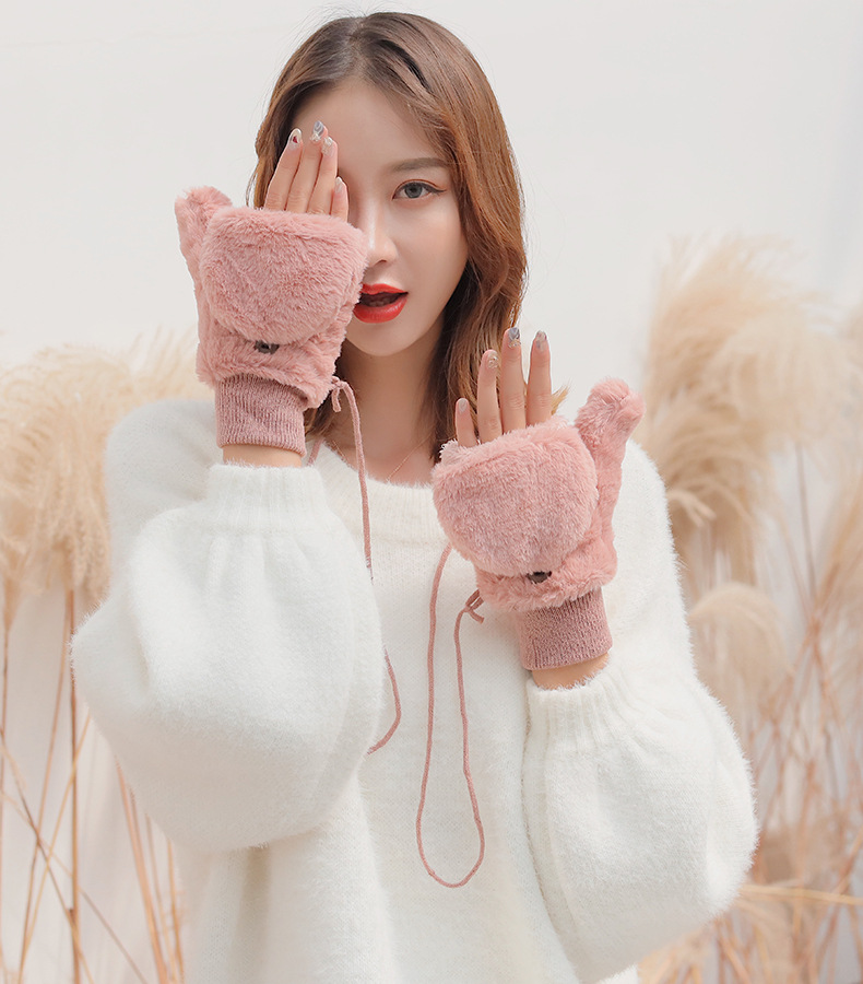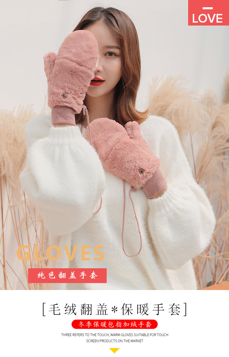 한국식 봉제 단색 장갑 귀여운 학생 따뜻한 이중 두꺼운 반 손가락 플립 커버 장갑 가을과 겨울 여성용스토어 가기