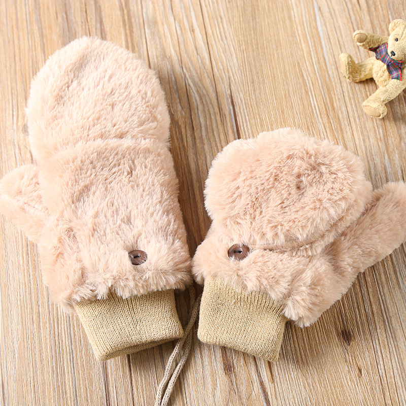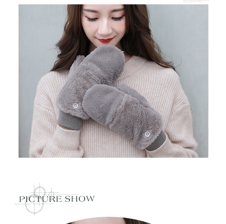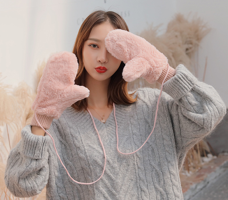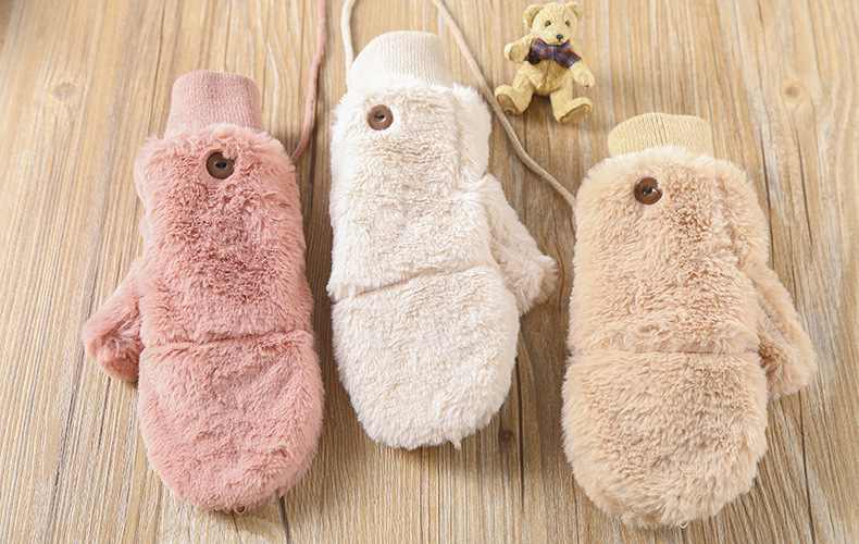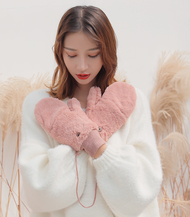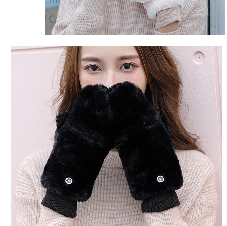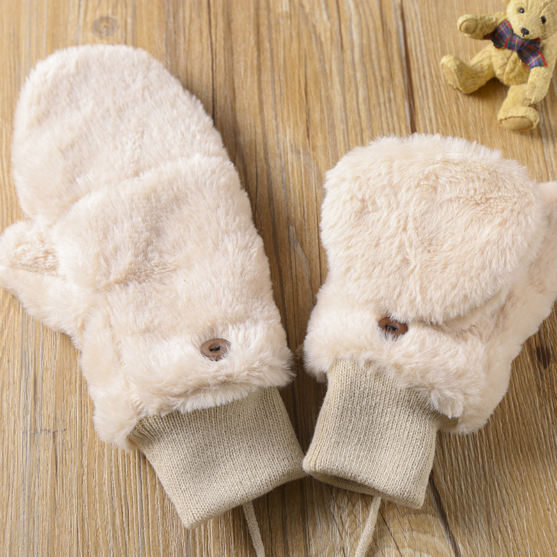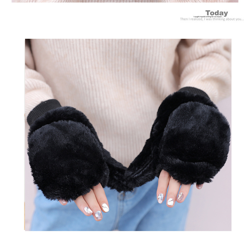 한국식 봉제 단색 장갑 귀여운 학생 따뜻한 이중 두꺼운 반 손가락 플립 커버 장갑 가을과 겨울 여성용스토어 가기