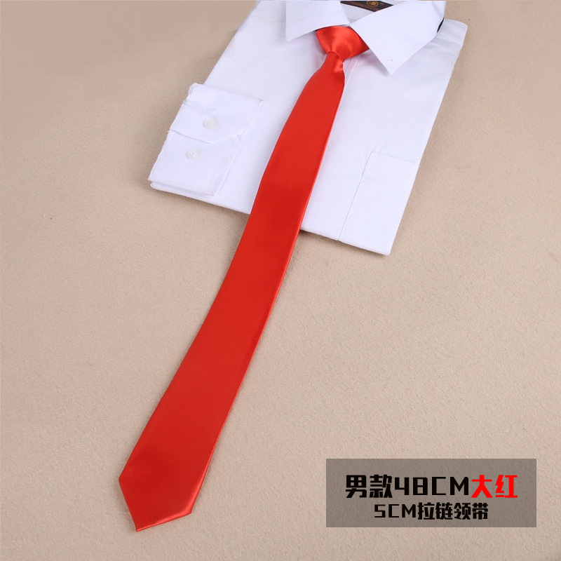 편리한 넥타이 매듭 무료 한국 좁은 5CM 학생 유니폼 지퍼 넥타이 도매를 당기기 쉬운 남녀 학생