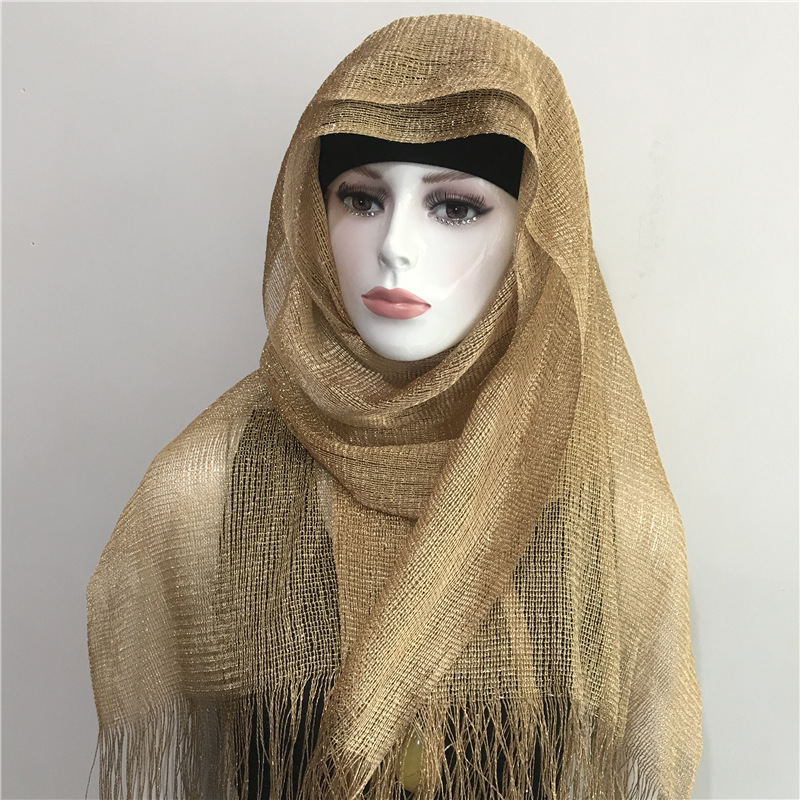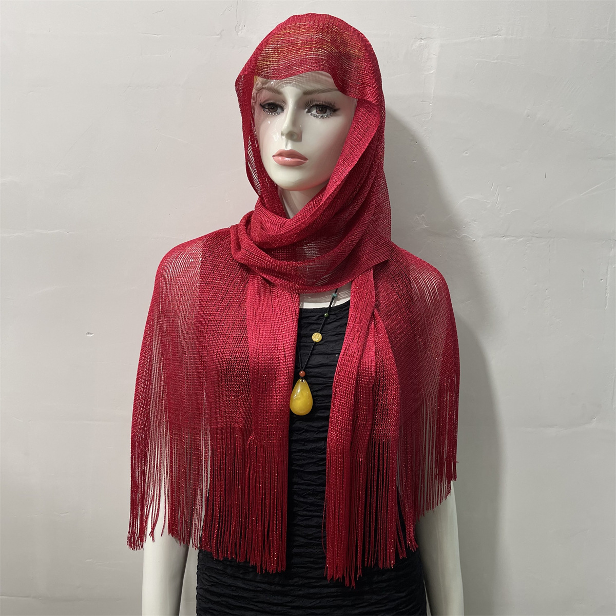 공장 직공급 2022 신형 폴리 에스테르 레이 터번 밝은 실크 술 스카프 중동 단색 터번