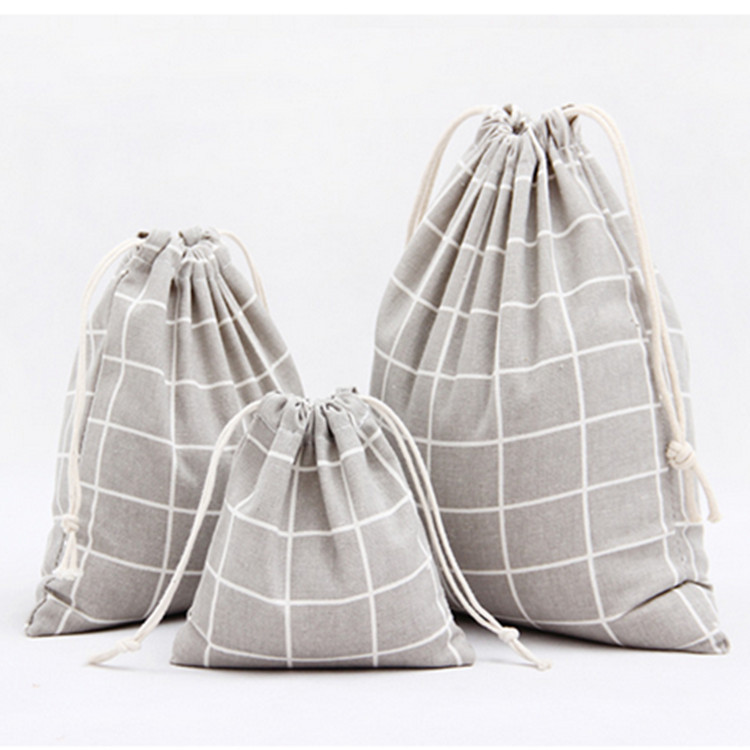 새로운 작은 신선한 보관 가방 도매면과 린넨 격자 무늬 가방 번들 포켓 드로우 스트링 차 선물 가방스토어 가기