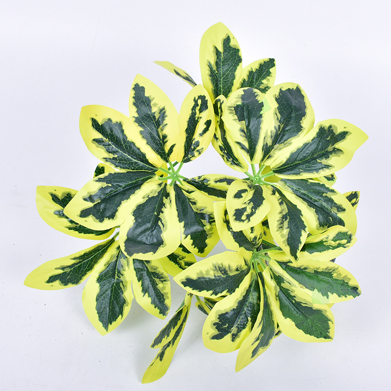 시뮬레이션 9-포크 덕 팜 일곱 별 잎 꽃꽂이 액세서리 녹색 조경 토목 식물 벽 장식 녹색 오리 발 우드