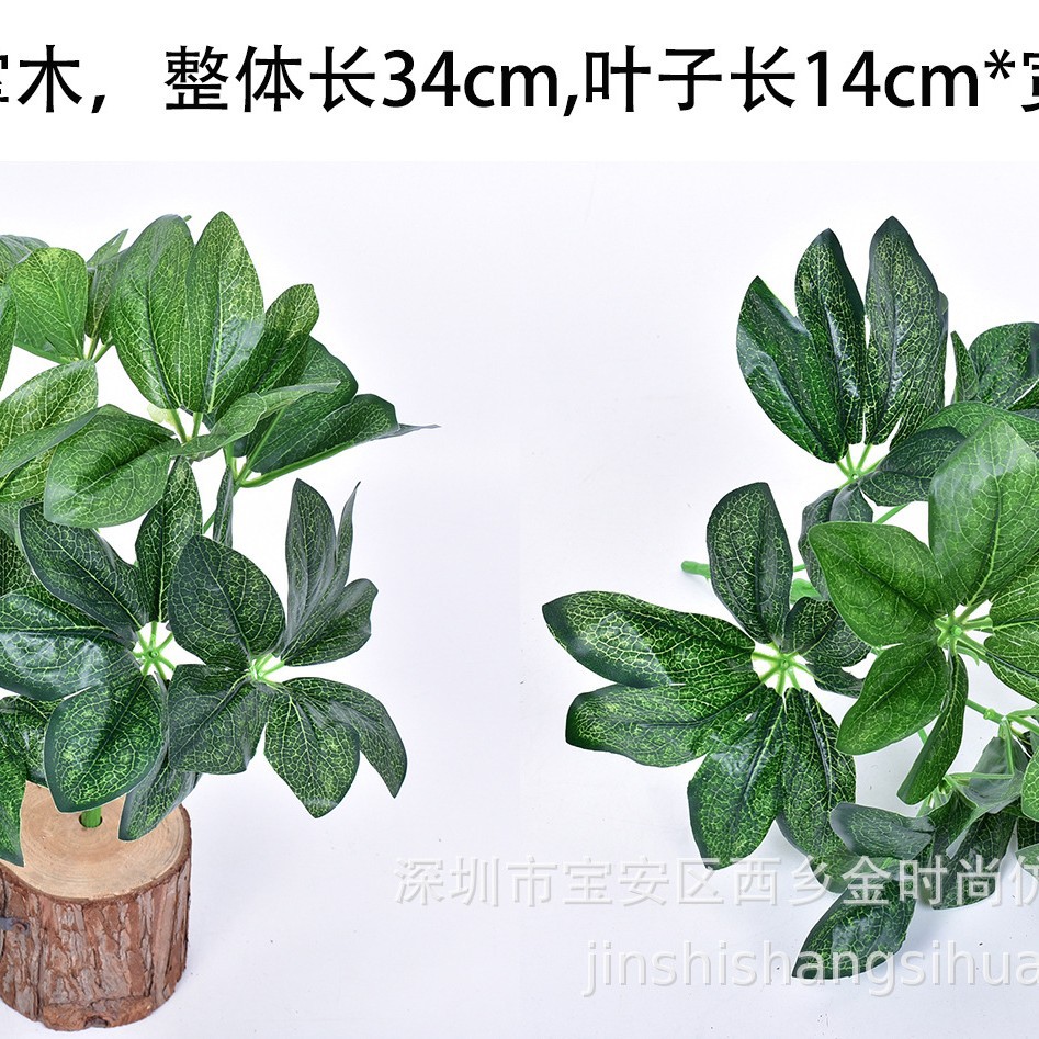 시뮬레이션 9-포크 덕 팜 일곱 별 잎 꽃꽂이 액세서리 녹색 조경 토목 식물 벽 장식 녹색 오리 발 우드스토어 가기