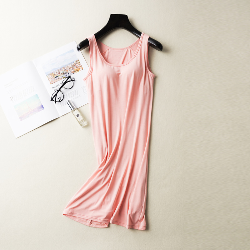 가슴 패드가있는 모달 조끼 잠옷 여성용 가방 힙색 착용 브래지어 브래지어 원피스 조끼 겉옷 잠옷 중간 길이