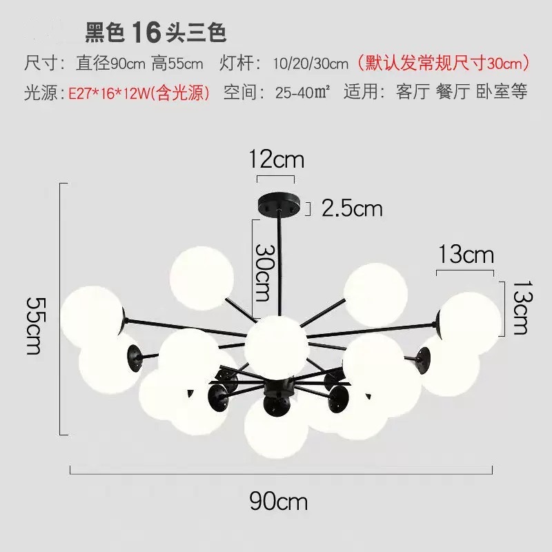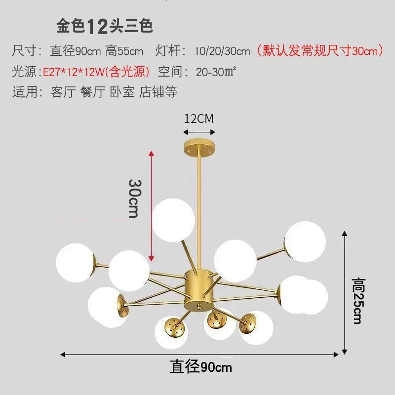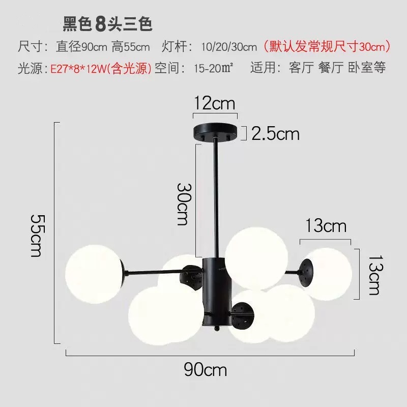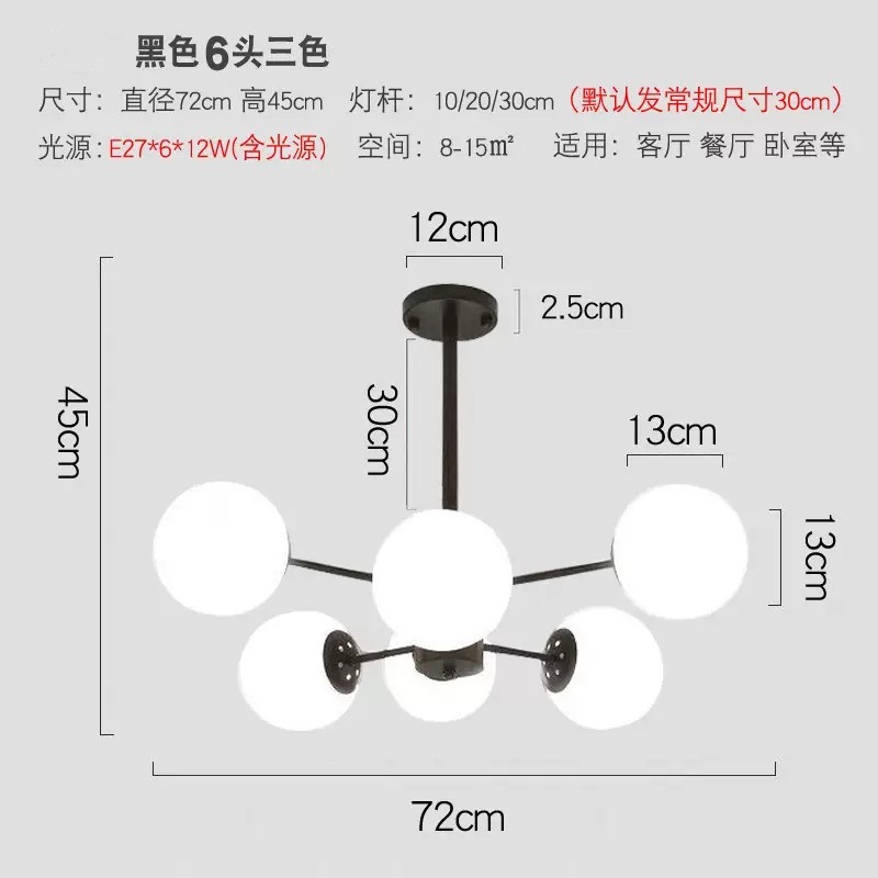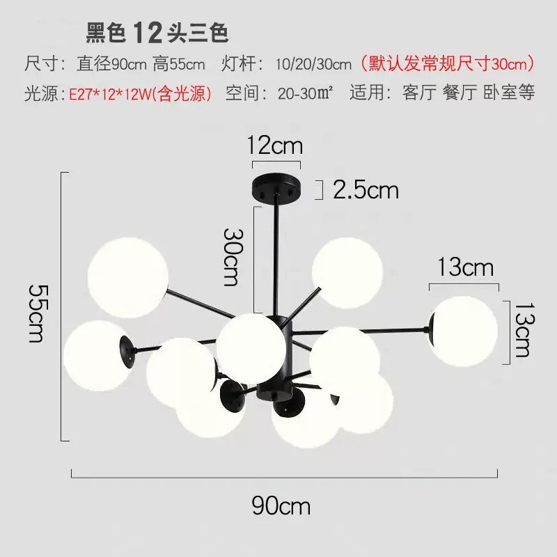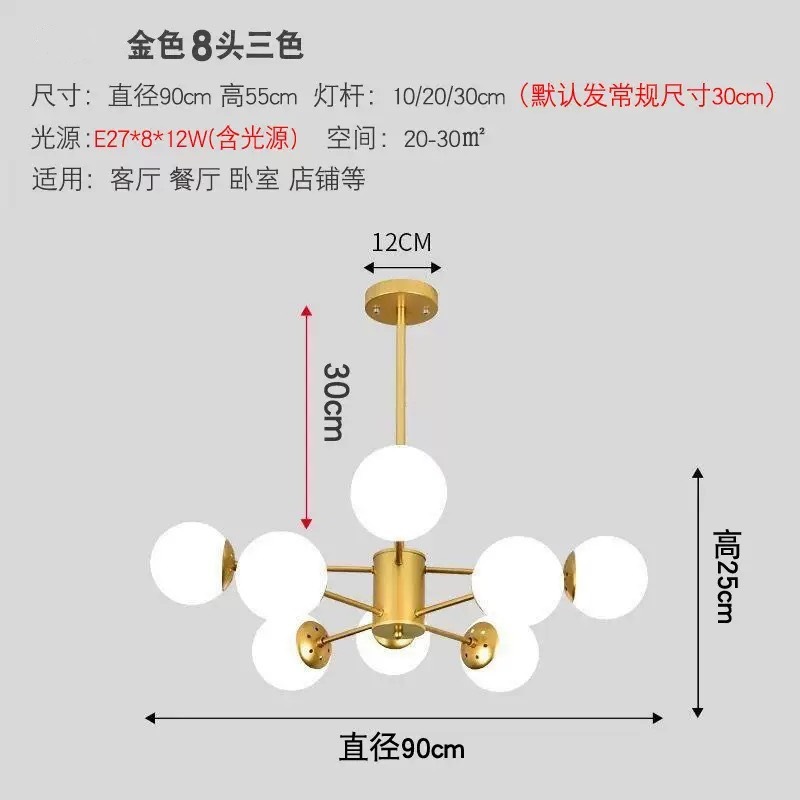 북유럽 스타일 크리 에이 티브 간단한 식당 샹들리에 공 침실 분위기 램프 매직 콩 유리 거실 샹들리에스토어 가기