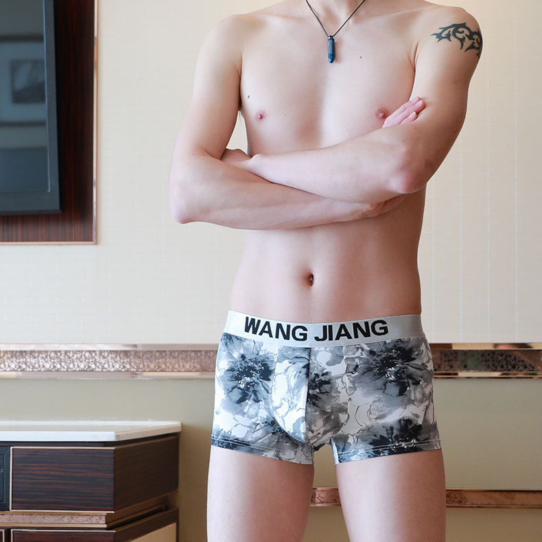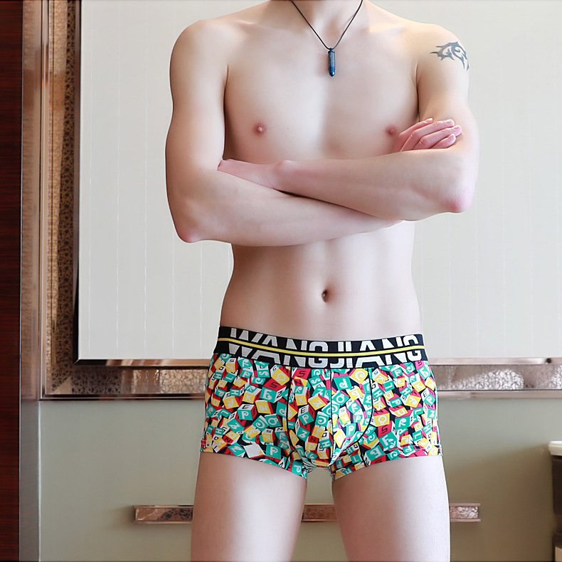 여름용 통기성 남성 속옷 프린트 아이스 실크 사각팬티 남성용 이중 레이어 U자형 볼록 주머니 통기성 사각팬티 남성용스토어 가기