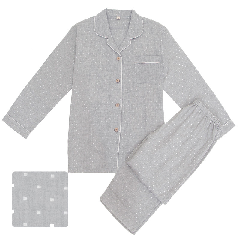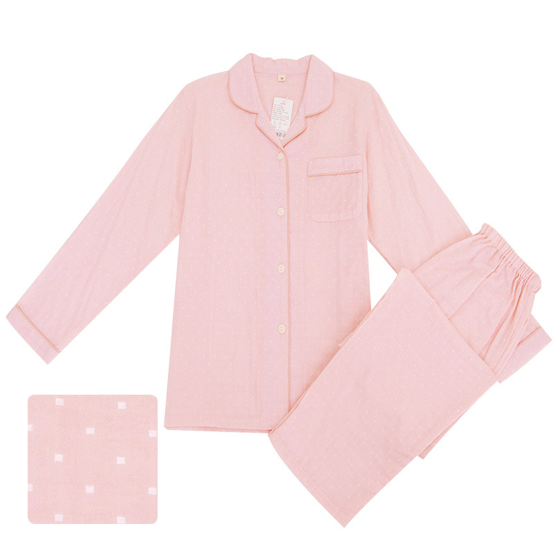 순면 커플 잠옷 더블 레이어 거즈 봄과 가을 스타일 인쇄되지 않은 대형 고품질 남성과 여성 무지 가정 의류 일본식 직조스토어 가기