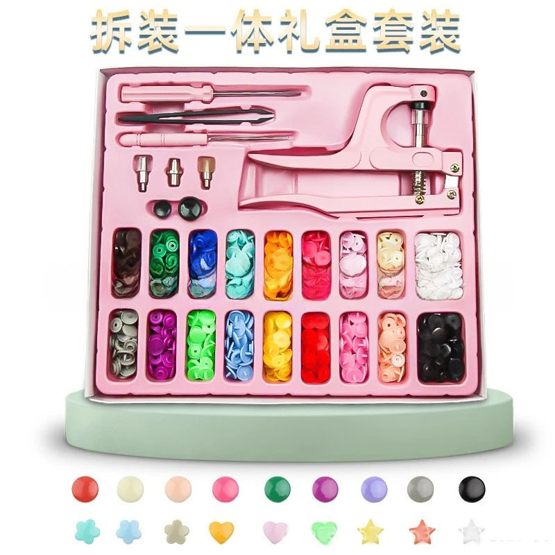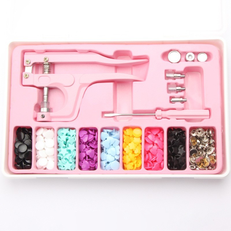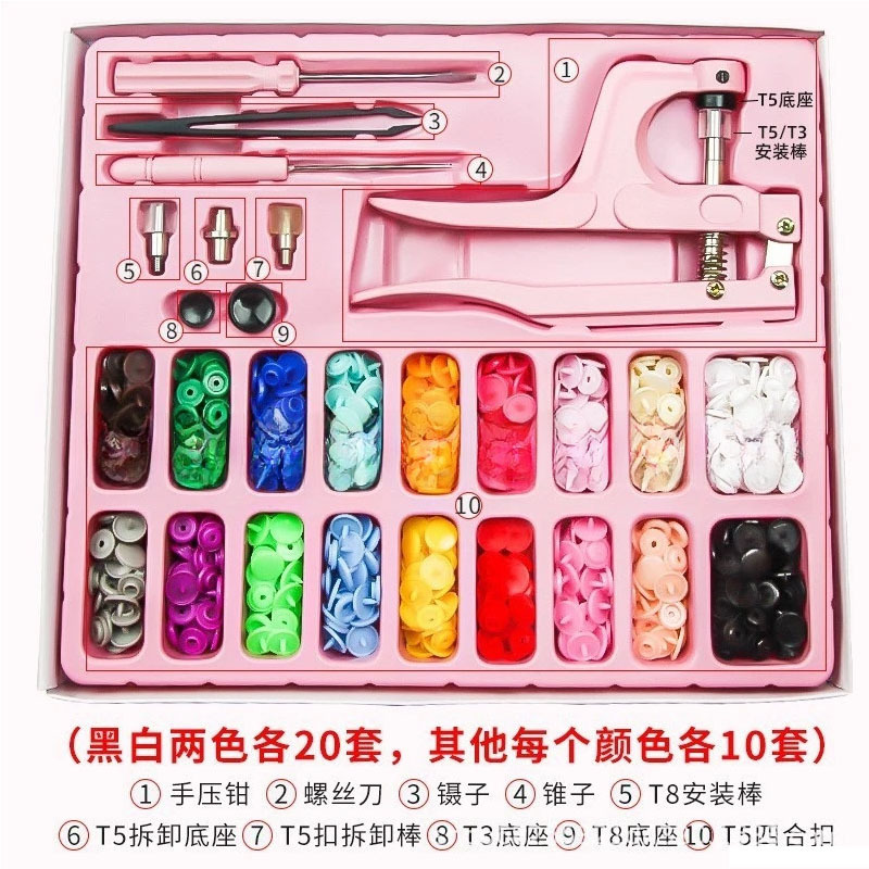 국경 간 T3/T5/T8 플라스틱 수지 4 버튼 도구 손 프레스 펜치 금속 5 발톱 버클 세트 핑크 핸드 프레스 펜치