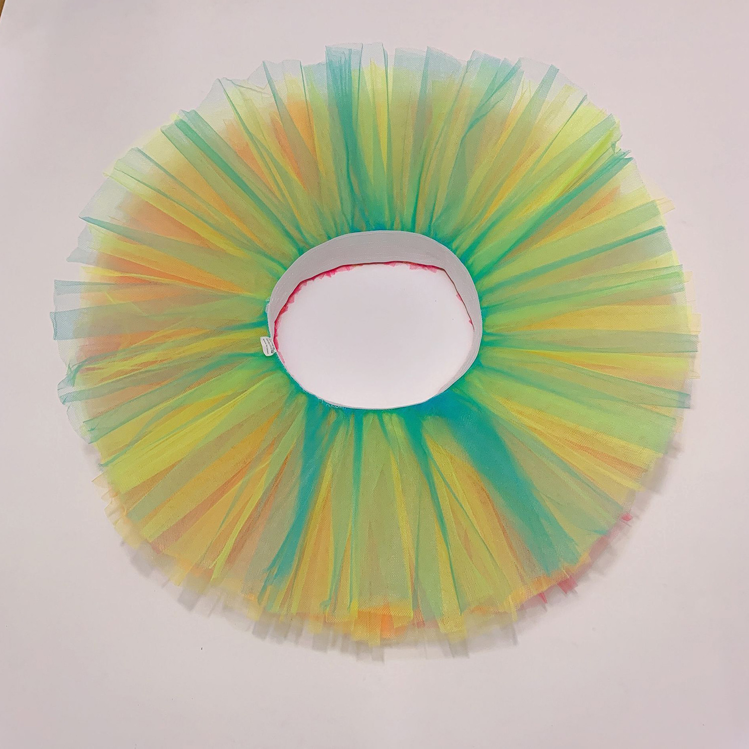 五层纱,裙长26CM左右,腰围拉到120CM左右,弹力很好,支持各种定制